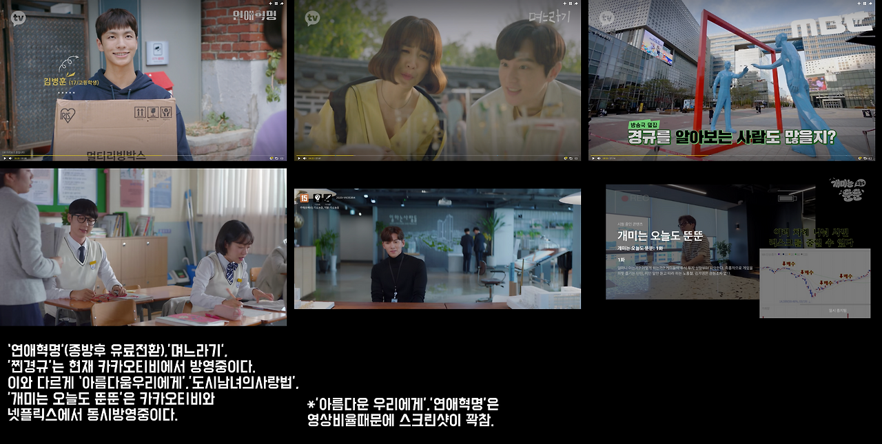 카카오는 12월 22일부터 시작하는 ‘도시남녀의 사랑법’을 카카오 티브이와 넷플릭스에서 동시에 송출하기 시작했다. 뒤를 이어 동명의 중국 드라마를 리메이크한 ‘아름다운 우리에게’도 송출을 시작했다. 넷플릭스 가입자는 넷플릭스에서 보면 된다. 카카오톡으로 시청할 사람들은 카카오 티브이로 드라마를 시청하면 된다. '도시남녀의 사랑법'을 기획한 카카오 엠(제작사인 글 앤 그림도 카카오 엠 자회사다.)은 넷플릭스에 맞게 오프닝 시퀀스를 수정하기도 했다.