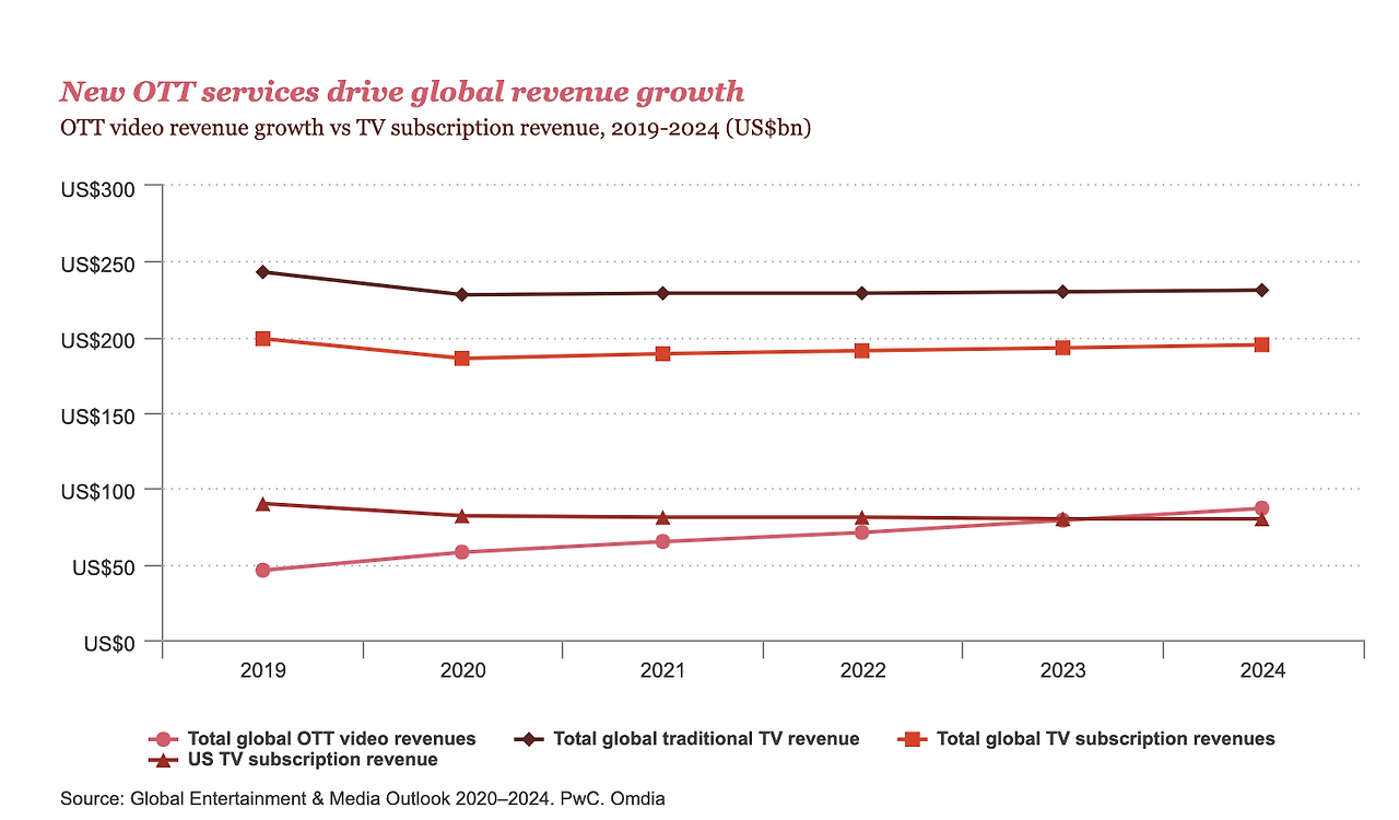 방송 매출도 글로벌 관점에서 보면 여전히 OTT보다 매출총액은 크다. 하지만 2024년에 이르러서는 TV 매출을 OTT매출이 점차 방송 매출을 앞서리라 예상하고 있다. 이러한 추세 속에서 우리가 봐야 할 점은 ‘어느 분야가 우월한가?’가 아니다. 그보다는 영화와 드라마를 보는 습관과 행동이 점차 이용자 중심으로 변해가고 있다는 걸 주시해야 한다.