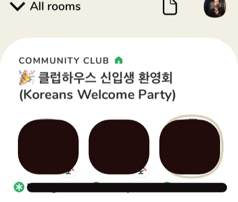 [오늘 사진에는 제 클럽하우스 화면을 캡처했는데요. 개인정보 보호를 위해 제 프로필 사진을 제외한 다른 이들의 프로필 사진은 모두 가렸습니다. 참고로 제 클럽하우스 아이디는 @freeoos입니다.]