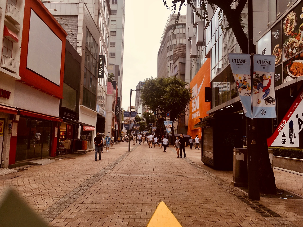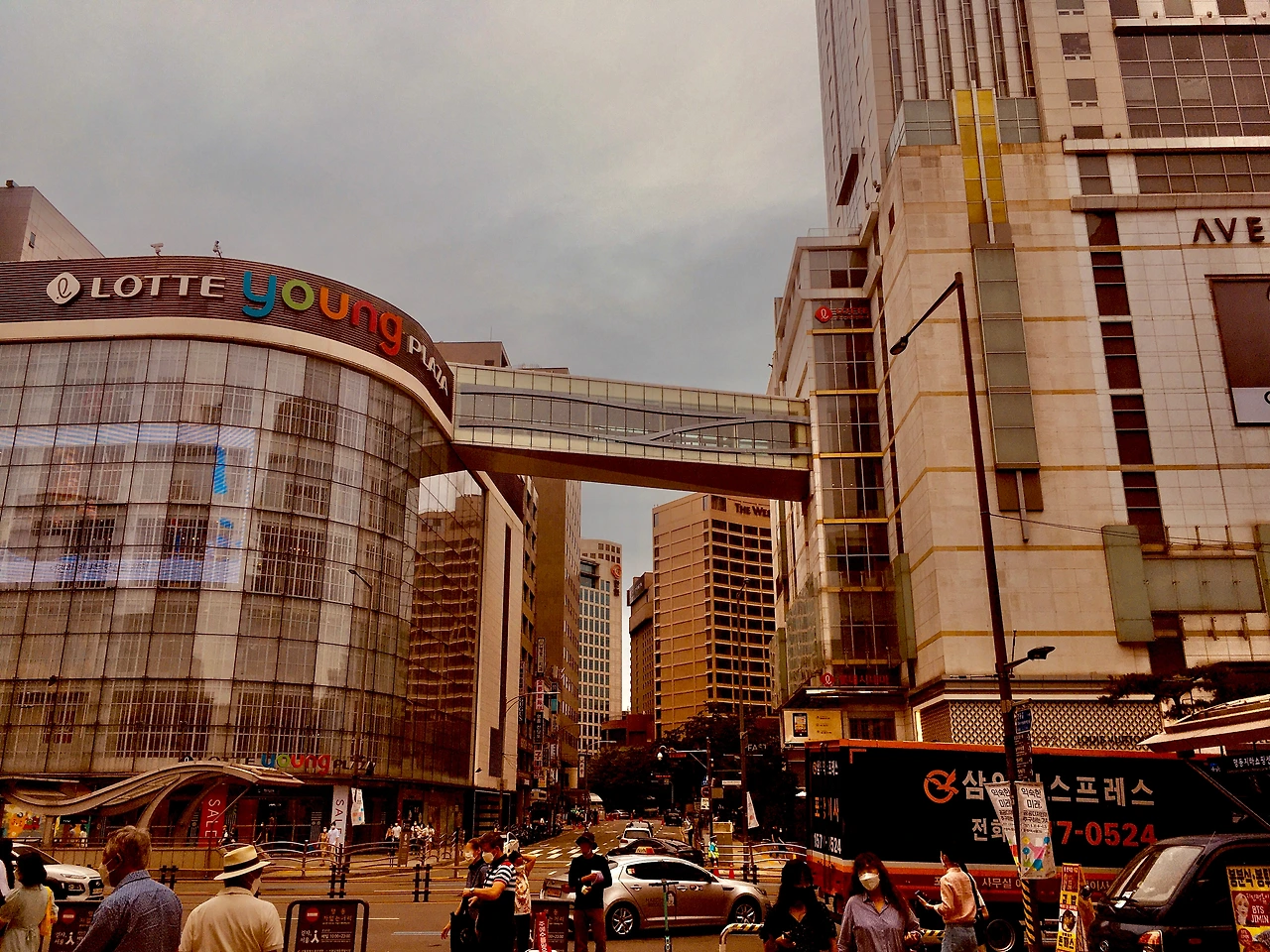 명동은 길과 건물에 맞추어 상점 및 각종 공간이 즐비하다. 이곳에서는 사람들이 공간을 선택한다. 물론 길거리에 노점상이 있지만 대부분 음식이다. 롯데백화점 본점과 명동거리는 도로를 두고 경계가 선명하다. 이 덕에 롯데백화점 본점은 명동과는 분리된 독립적인 상업공간 느낌이 강하다. 여기에 롯데백화점 옆에 위치한 롯데백화점 에비뉴엘 1층 샤넬 매장은 명동의 길거리 문화를 보다 선명하게 나눈다.