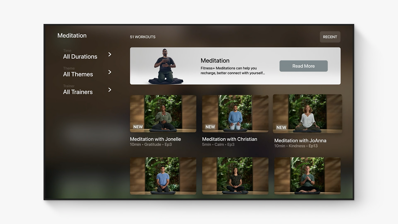 애플 피트니스의 소개 영상만 놓고 보면 '콘텐츠 설명'에 불과하다. 그렇지만 그 기저를 따라가면 반도체 기술로 만든 센서가 몸의 각종 수치를 체크한다. 정보 최적화는 최적화된 콘텐츠로 이어진다. 피트니스+의 영상을 보자. 운동하는 사람들 뿐만 아니라, 피트니스 크리에이터들도 애플 워치를 보면서 칼로리, 심장박동수를 확인하는 걸 볼 수 있다. 운동화면에는 사용자의 상태 정보가 나와있다. 애플 워치를 착용한 사용자들은 아이폰, 아이패드, 애플 워치 앱으로 실시간 신체정보를 확인할 수 있다. 무엇보다 자신의 신체정보를 기반으로 자신에게 적합한 운동을 선택할 수 있다. 그 종류는 [명상, 사이클, 로잉머신, 요가, 필라테스 등] 다양하다.