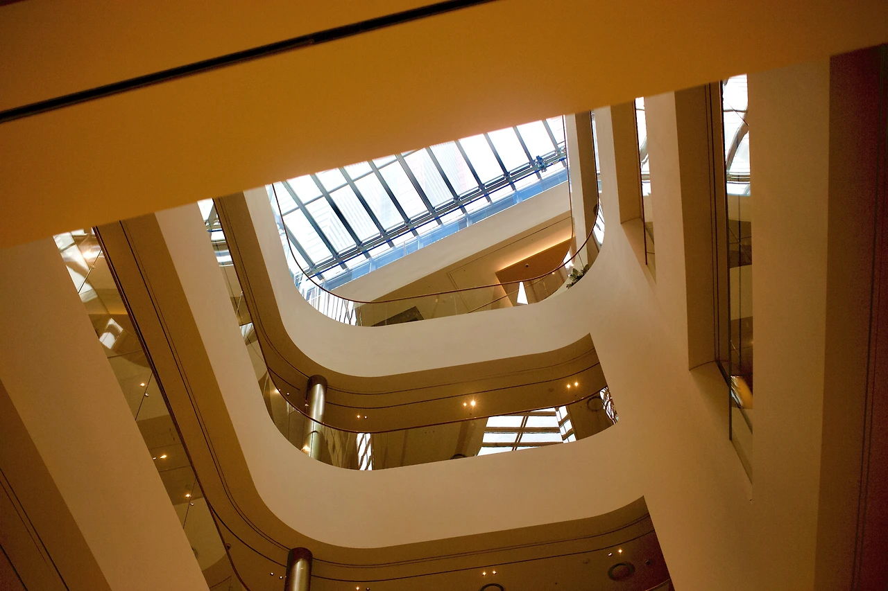 지상 2층에서 4층까지 입점한 브랜드 매장을 지나가는 길들은 통유리와 나무를 사용했다. 사람들이 걷기 편하도록 통로도 넓게 만들었다. 걷기 편한 통로 덕분에 마치 길을 ‘걷는’ 느낌을 받는다. 원형 조명도 다양하게 사용해 곡선미가 공간 안에서 더욱 살아나게 했다.
