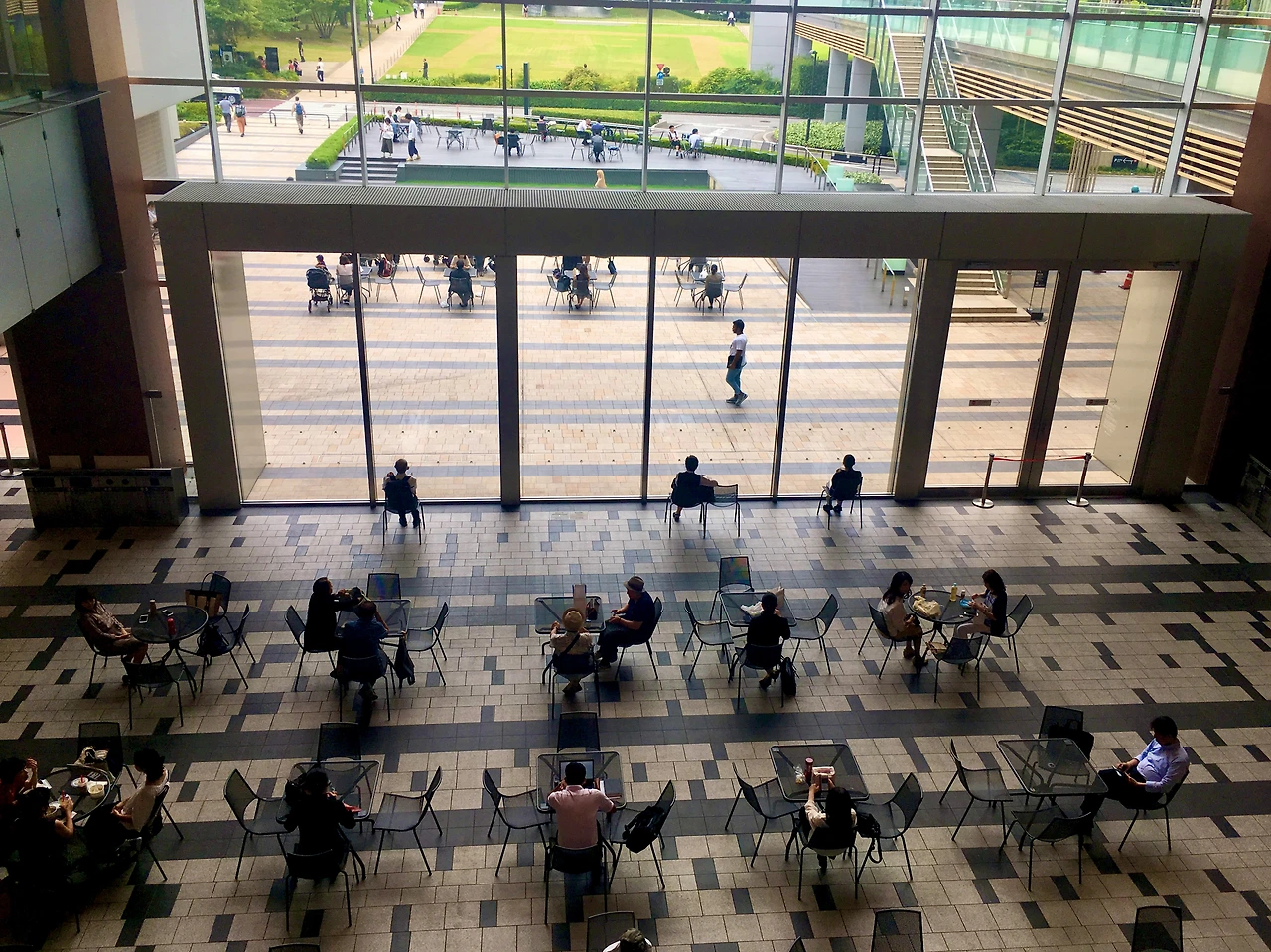 이는 코로나19 탓이 크다. 실제로 '더 현대 서울'을 둘러보면 '코로나19 거리두기 4단계'로 인해 오프라인 콘텐츠 전개가 매끄럽지 않다. 사람들이 앉을 수 있는 많은 공간들은 착석 금지가 되어있으며 취식 공간도 제한되어있다. 게다가 6층에서는 취식 공간 확보를 위해 화분으로 임시 벽을 만들었다.