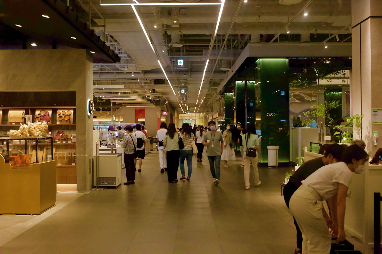 1층에서 4층까지는 기존 백화점 공간 논리를 사용한다. 동시에 직관적인 안내와 죽은 공간, 공간 동선을 통해 사람들이 공간의 주인공이 되도록 노력한다. 반면에 지하 1,2층은 기존 백화점과는 다른 공간과 브랜드 큐레이션에 가깝다. 특히 지하 1,2층 은 '마루이 마루이 백화점 유락초'점과 유사한 면이 많다. 오히려 마루이 마루이 백화점 유락 초점이 미처 해결하지 못한 직선적인 공간 전개를 원형 조명과 식물을 통해 유기적으로 만드는 데 성공했다.