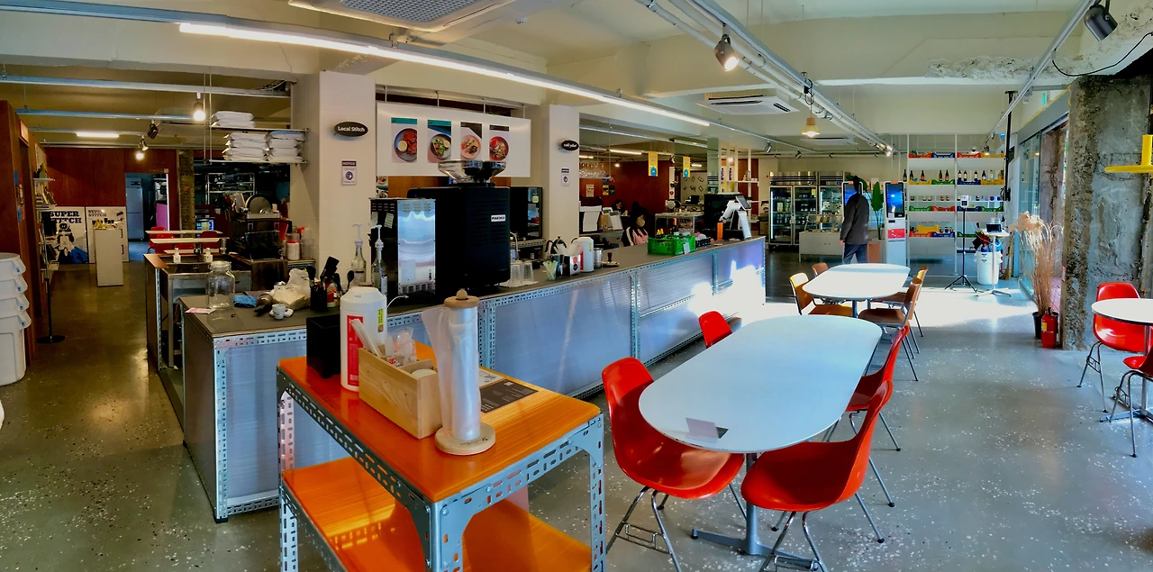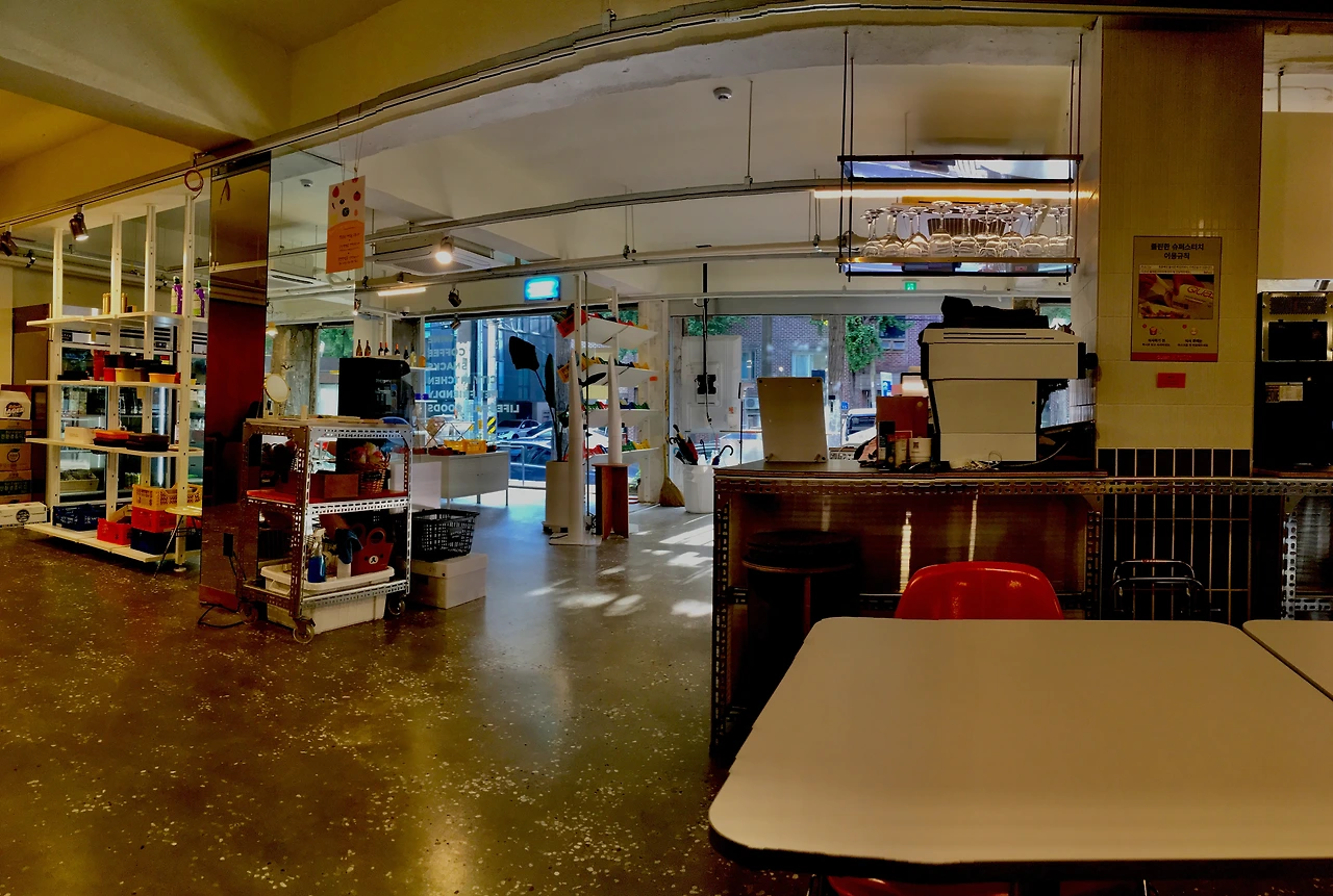 로컬 스티치는 다른 지역에서는 찾을 수 없는 '로컬 가치'에 기반해 공간을 만들었다. 마감하지 않은 거친 벽, 에폭시로 마감한 바닥, 낮은 천장. 파티션으로 나눈 공간. 다소 공간이 뭔가 완성되지 않는 느낌이 강하다. 완성되지 않았다는 느낌은 '사람'이 공간에 개입할 여지를 충분히 만든다. 말끔한 공간을 선호하는 이들에게 로컬 스티치 서교 2점은 다소 낯설지 모른다. 하지만 원래 서교동과 연결된 홍대 지역은 ‘날것’이 강한 동네였다. 로컬 스티치 서교 2점 주위를 둘러봐도 동네를 깔끔하기보다는 날것 그대로다. 정겨운 옛 골목길 정서. 오징어 게임에서 나온 구슬치기 세트장과 비슷하다. 이런 면에서 로컬 스티치 서교 2점은 지역정서에 잘 스며든 공간이라고 할 수 있다.