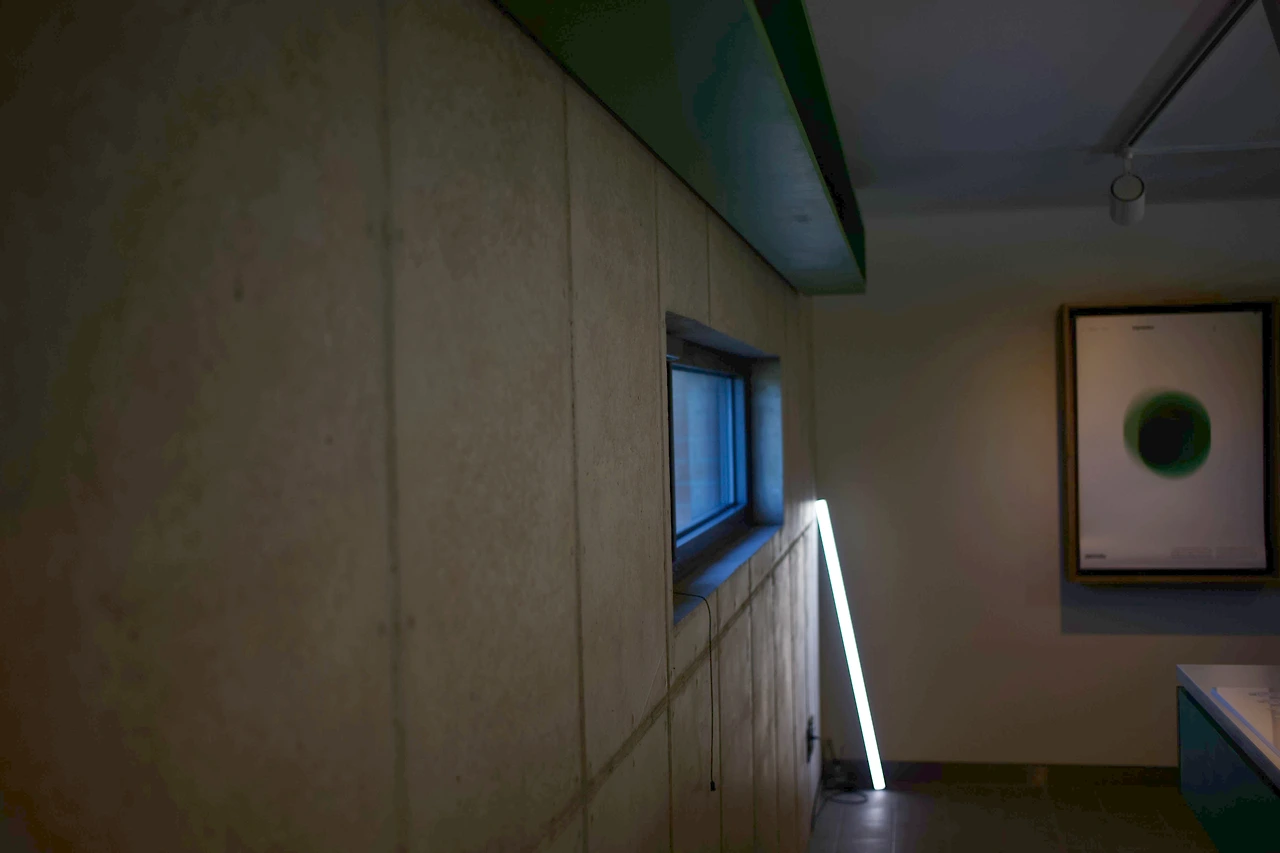 쇼룸은 조금 다르다. 작은 창문을 사용해 빛이 공간에 들어오는 것을 최소한으로 제한했다. 카페동과 다르게 갤러리같이 차분하게 만든 쇼룸은 산 노루가 지향하는 가치를 표현한다. 쇼룸에 사용된 제한된 채광과 ‘릴 조명’은 산노루 제품을 ‘오브제’로 만든다. 이를 통해, 산노루가 지향하는 ‘사람과 함께 만들어가는 차문화’ 모습을 공간으로 표현한다.