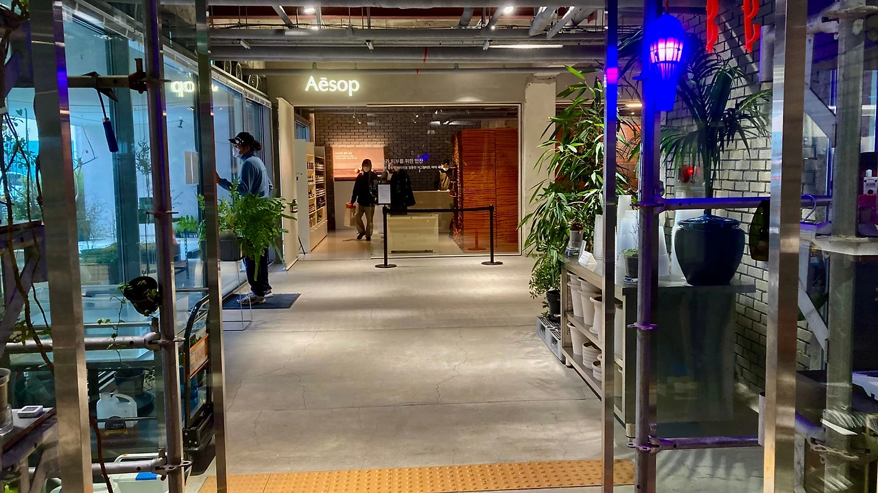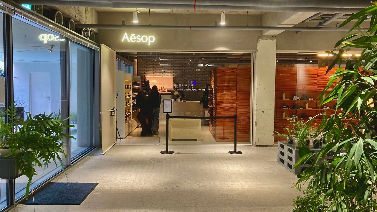 이솝은 '도시의 감성'에 맞는 직영 매장을 만든다. 이걸로 끝이 아니다. 로컬 정서도 매장에 표현한다. 그렇기에 이솝은 제품과 공간의 결이 사람을 향하는 매우 드문 브랜드다. 이솝은 자신들이 하고 싶은 말을 한다. 대표적인 예가 코끝을 산뜻하게 자극하는 파슬리 시드 향이다. 모든 이솝 매장은 파슬리 시드 향이 가득하다. 이솝 매장이 아닌 다른 공간에서 파슬리 시드 향을 맡게 되면? 자연스럽게 이솝을 떠올리게 된다.