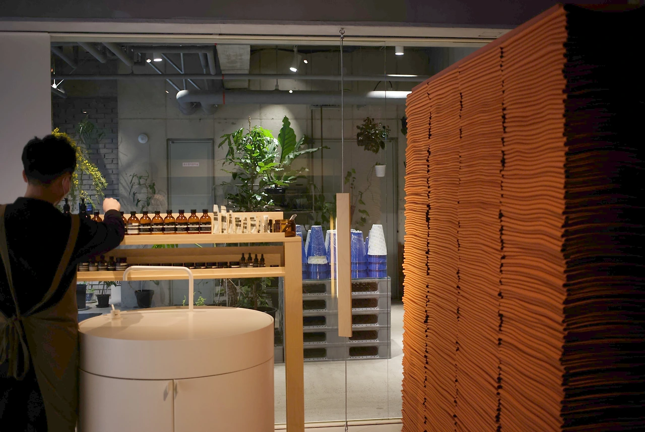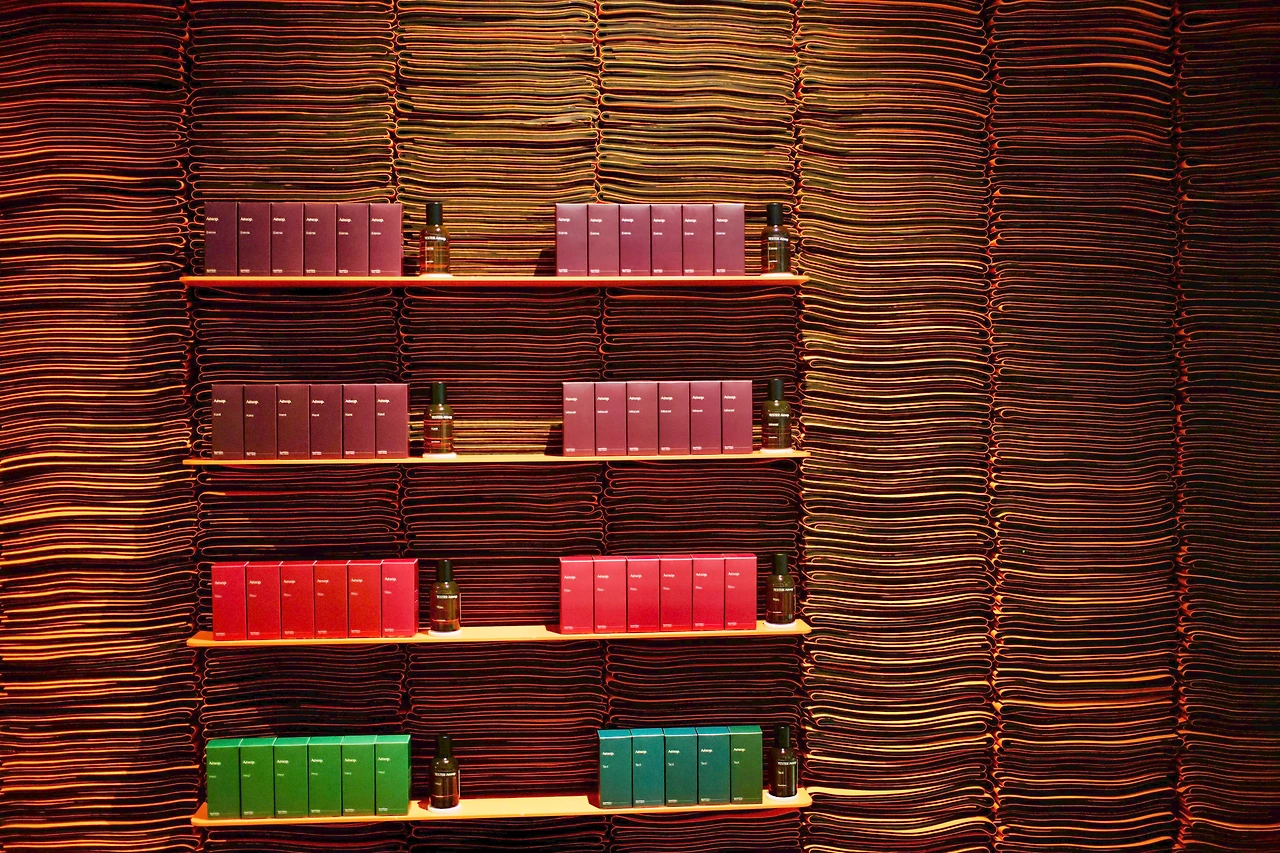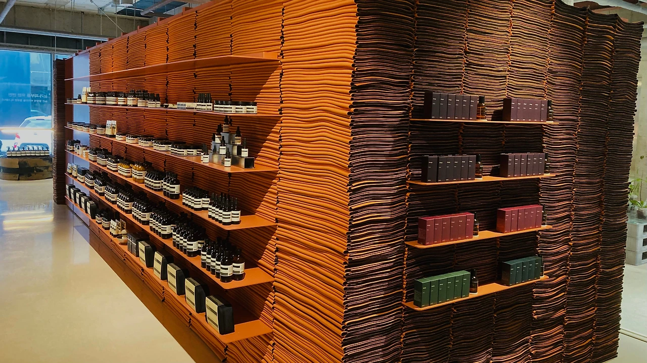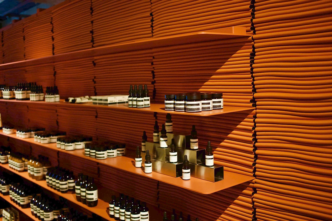 화장품은 매일 삶 속에서 우리와 관계를 맺는 도구 중 하나다. 선크림, 로션, 에센스, 색조화장품 등 다양하다. 우리는 화장품을 매일 바르고, 제품은 피부에 스며든다. 화장품이 추구하는 방향은 언제나 사람들과 ‘동행’이다. 그렇기에 화장품 매장은 언제나 사람들과의 연결. 부드러운 건축을 지향해야 한다. 하지만 대다수 화장품 매장은 ‘제품 판매’에만 집중한다. 많은 화장품 브랜들이 여전히 화장품의 본질과는 먼 공간을 선보인다. 당연히 공간에 ‘연결’이 부족하다. 이솝은 이 부분은 정확하게 알았다.