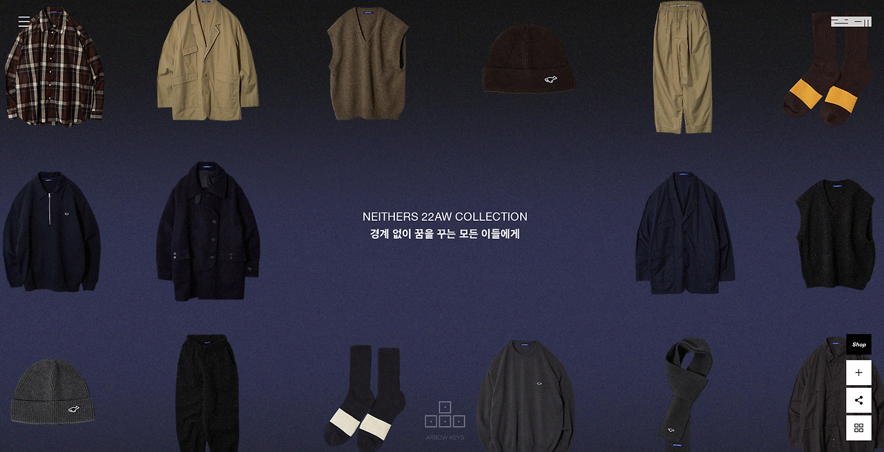 이구성수의 메인 쇼룸에서 소개하는 브랜드들이 다양한 장르로 이어지는 이유도 이 때문이다. 이구성수의 메인 쇼룸에 서 소개하는 아이템들. 그 작은 점들. 이 점을 연결하는 순간 하나의 감각이 태어난다. 우리 는 그걸 취향 혹은 스타일이라고 부른다. 이것은 '의식주도', '의식주락', '의식주정' 같은 생 활양식 철학으로 발전한다. 브랜드 큐레이션은 이걸 이끄는 징검다리라고 할 수 있다.