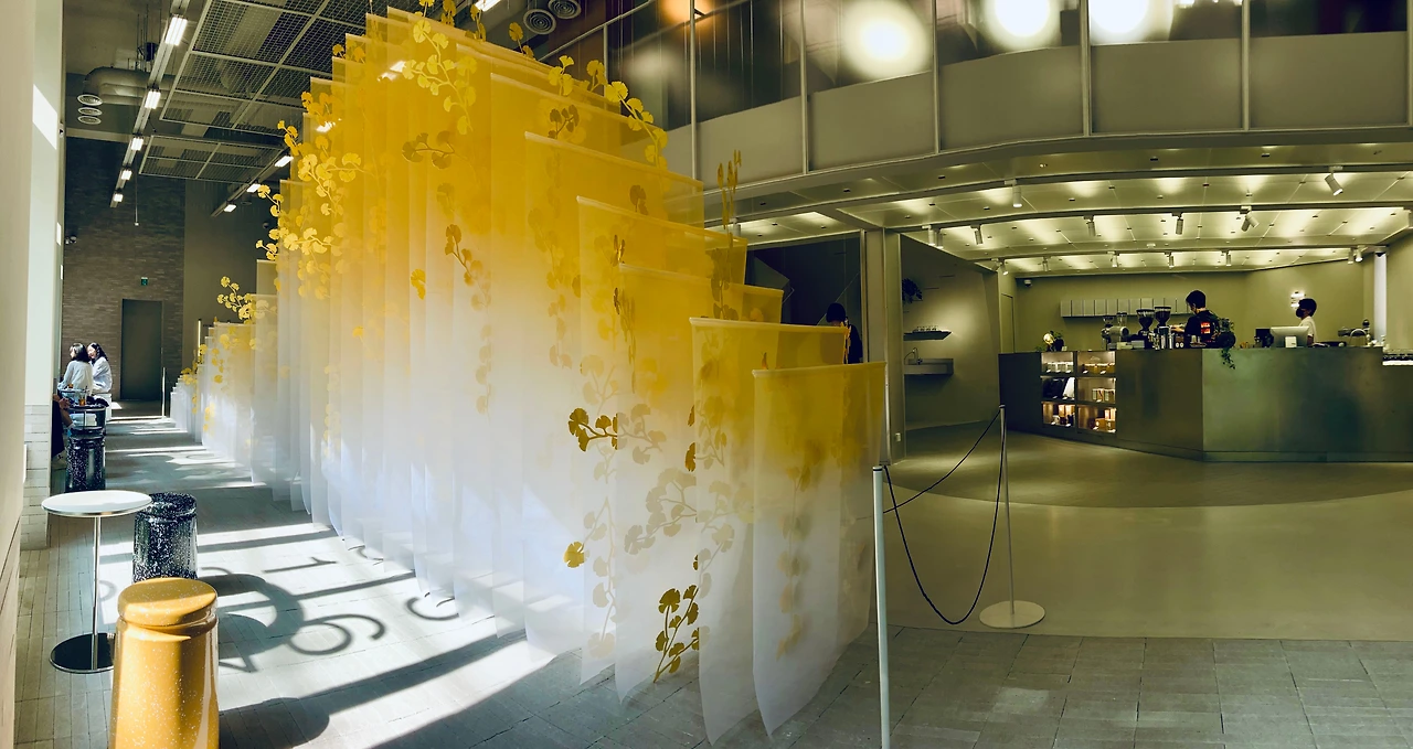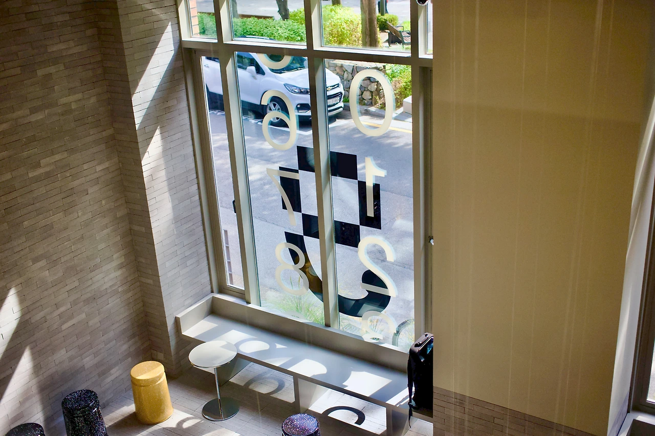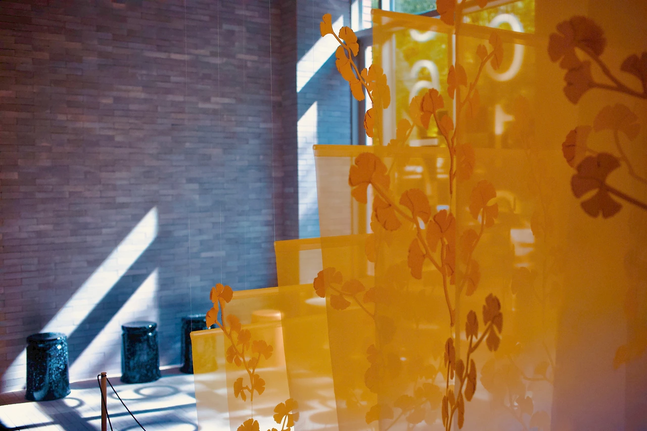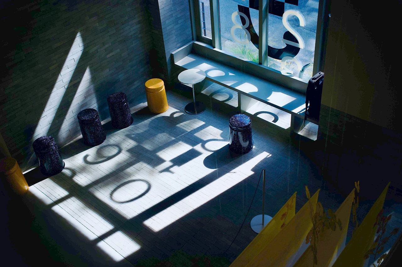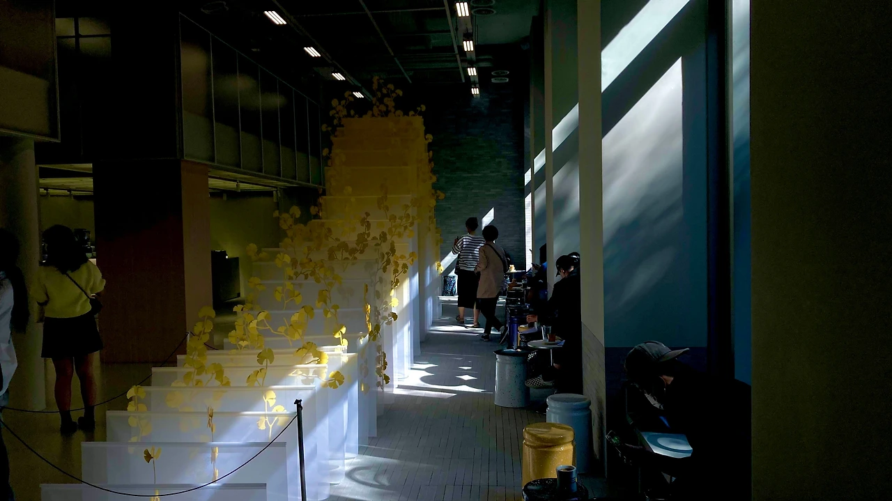 29CM는 화려한 조명. 아늑한 조명 없이 순수하게 빛과 오브제만 사용해 이구성수를 부드럽게 만들었다. 창문과 양지윤 작가님의 작품에 반사되는 빛은 이구성수의 분위기를 세밀하게 바꾼다. 창문을 통해 나눠져서 들어오는 빛은 매 순간 새롭다. 그 빛은 양지윤 작가의 작품을 만나면서 이구성수를 더 다채롭게 만든다. 한지로 제작된 은행나무 오브제는 따스한 햇빛을 더 부드럽게 만들고, 이구성수의 H빔과 금속 의자에 따스함을 집어넣는다. 이 덕분에 메뉴 팩트 커피와 2층 계단에서 각기 다른 이구성수의 분위기를 느낄 수 있다.