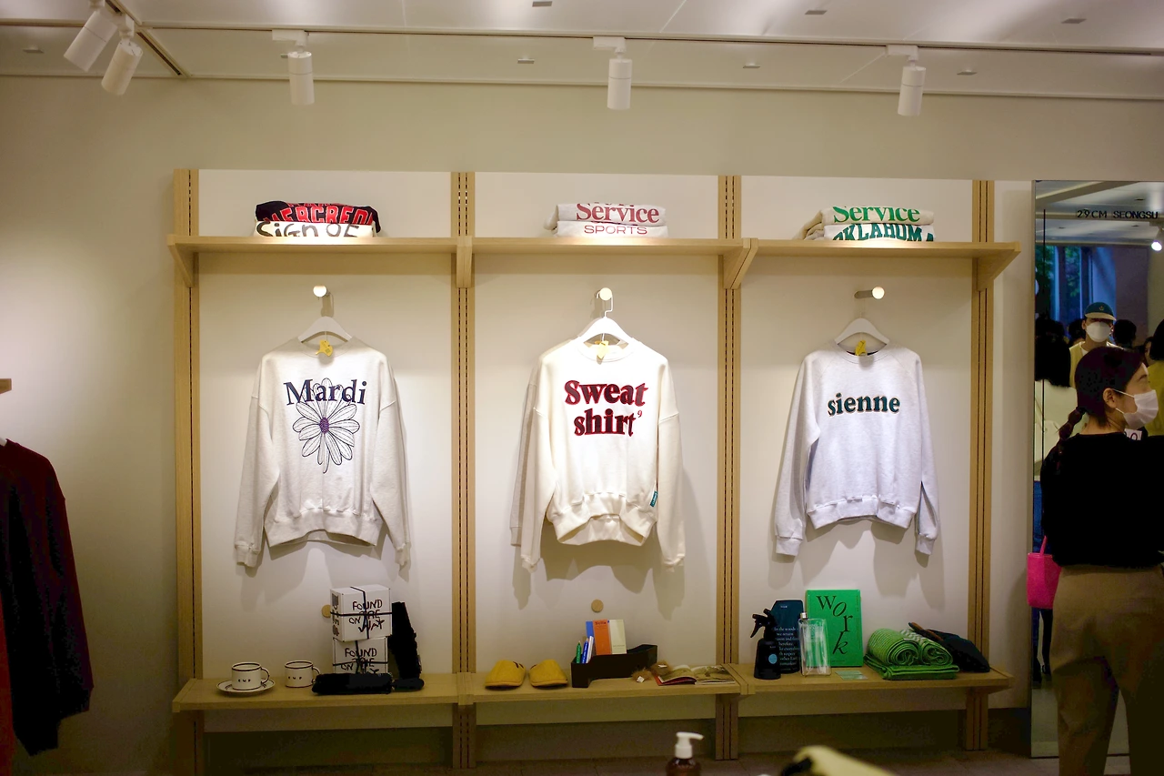 이구성수의 첫 테마는 ‘처음 만나는 가을: 스웨트 셔츠’다. 29CM 상품기획자(MD)들이 직접 큐레이션 한 패션과 라이프 상품을 쇼룸에 전시한다. 마르디 메크르디, 네이더스, 프렌다 등 독창적인 국내 디자이너 브랜드의 스웨트 셔츠도 한 곳에서 만나볼 수 있다. 공간 경험을 극대화하는 계절별 아트 전시도 한다. 올가을에는 양지윤 작가가 은행나무를 형상화한 작품을 1층에서 전시했다. 조인혁 작가 등 성수동을 기반으로 활동하는 10명과 함께 성수를 주제로 한 카세트테이프 형태의 미니북도 발간했다.