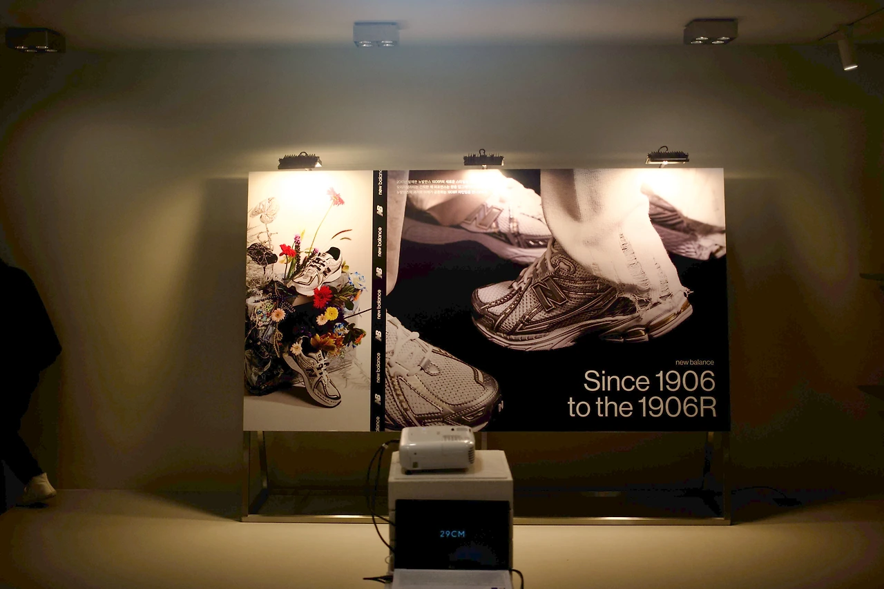 2층 공간에서 진행되는 오프라인 PT에서는 2009년에 발매된 MR1906 모델을 복각한 신제품 ‘1906R’을 소개한다. ‘스타일 그리고 테크놀로지 조화’를 주제로 시리즈의 첫 모델부터 가장 최신 모델까지 총 16개의 전 상품을 한자리에 전시한다. 뉴발란스 1906R의 디자인 히스토리와 기술력, 일상에 적용해볼 수 있는 스타일링 팁을 알려준다. 일반 매장에서는 만나볼 수 없는 스토리텔링과 큐레이션이 결합된 브랜드 콘텐츠다. 10월에는 29CM 입점 패션 브랜드인 이스트 로그와 뉴 발란스의 콜라보 상품도 공개될 예정이다.