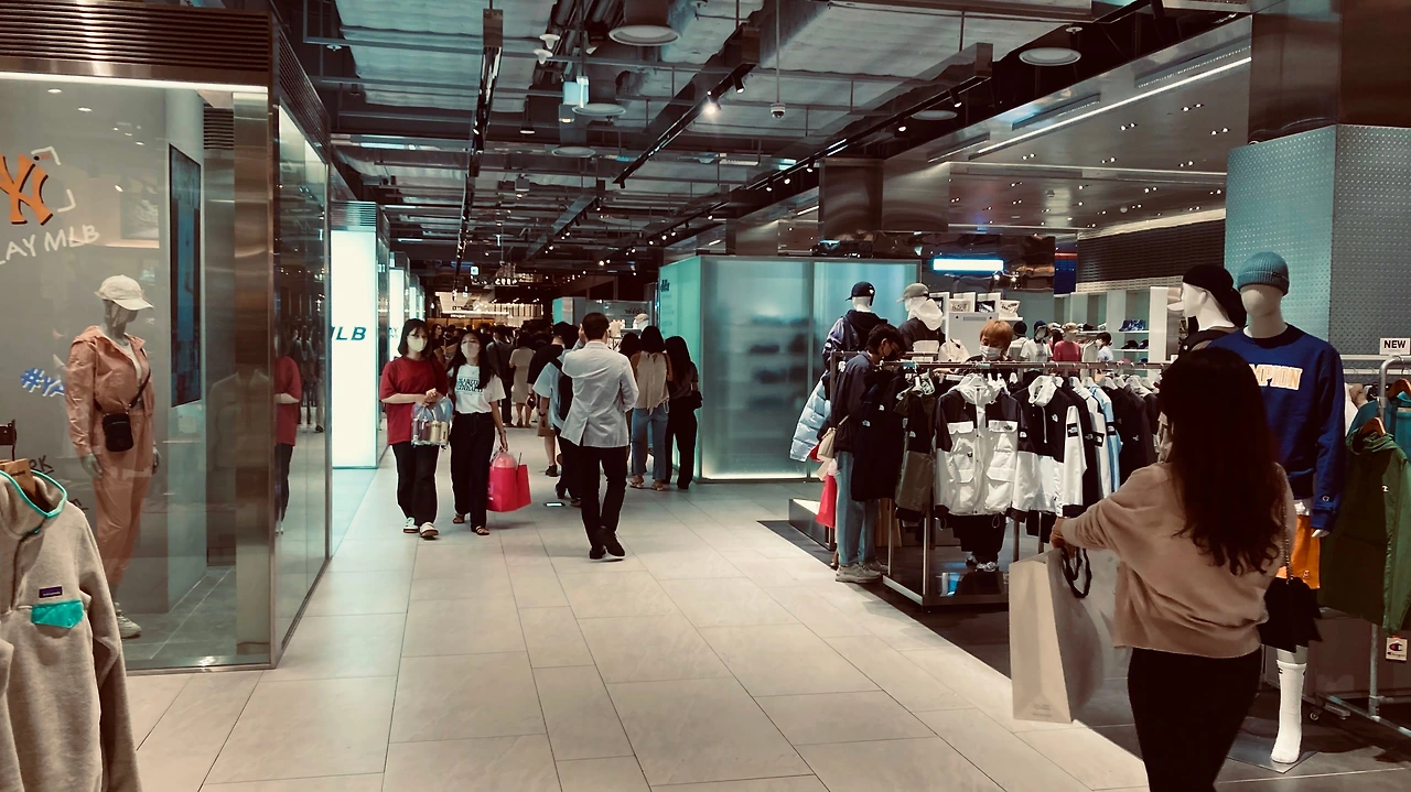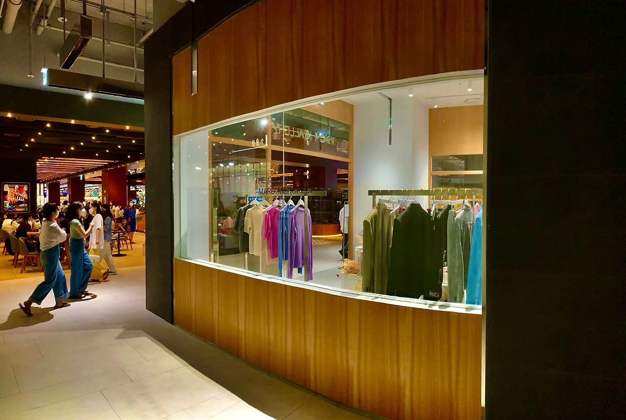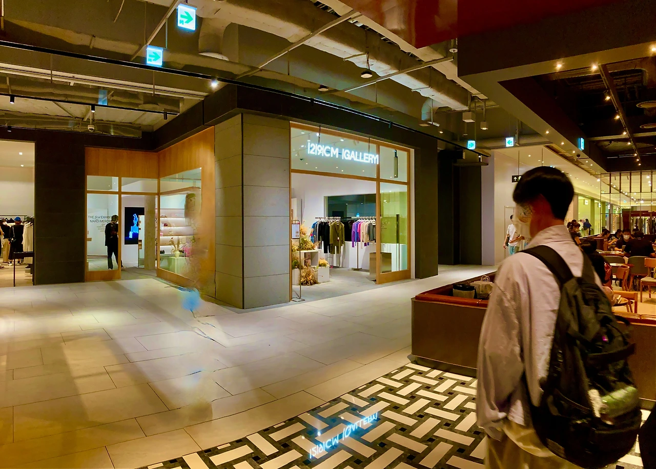 이구갤러리는 더현대 서울 공간을 반영해 자신들이 드러나지 않는 분위기를 택했다. 더현대 서울 지하 2층을 살펴보면 알 수 있다. 더현대 서울 지하 2층은 다른 층과 달리 다양한 장르의 브랜드들이 입점하고 있다. 더현대 서울은 각 입점 브랜드가 각자의 결에 맞는 색과 간판을 사용할 수 있도록 공간을 다양하게 만들었다.