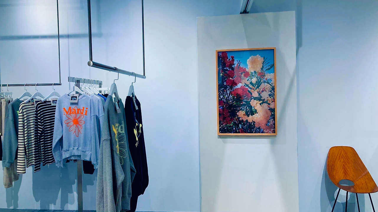 방문객들은 이곳에서 매달 전시 주제를 비주얼로 강하게 느낀다. 8월에 소개한 브랜드는 마르디 메크르디를 살펴보자. 생명력이 넘치는 꽃들을 오브제 존에 배치했다. 이는 온라인에서 성장한 29CM와 마르디 메크르디가 오프라인으로 뻗어져 나오는 모습을 표현하기 위함이다. 마르디 메크르디를 상징하는 로고가 ‘꽃’이라는 점도 한 몫한다. 이렇게 설치된 오브제는 브랜드 정체성을 포함해 29CM기 온라인에서 오프라인으로 나왔다는 의미도 전한다.