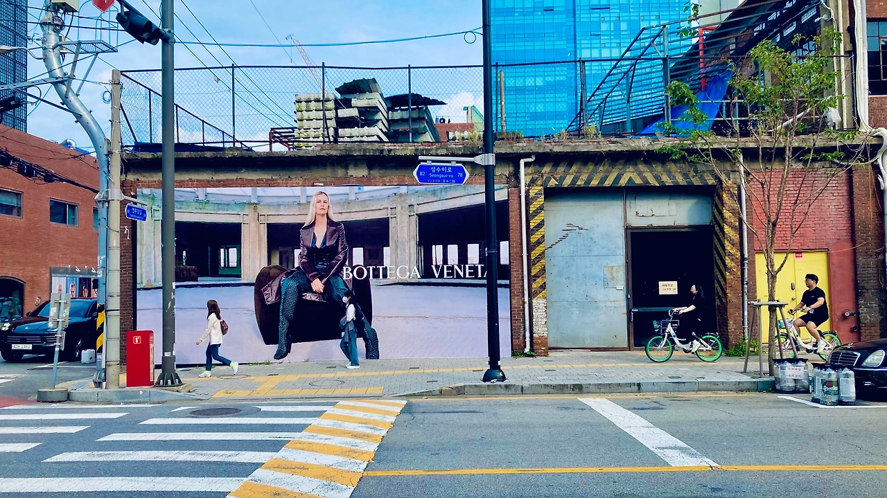 옛것을 채우는 새로움은 ‘믹스’다. 예를 들어 사진 속 보테가 베네타의 광고를 보자. 마지 벽화 같다. 동시에 세련되어있다. 스트리트 문화를 반영한 풍경도 쉽게 볼 수 있다. 벽돌벽과 성수동 풍경도 고스란히 보인다. 무언가 섞였다는 느낌. 무언가를 섞고 합치면 ‘나다움’이 나온다. ‘나다움’은 ‘자신만의 언어’를 표출할 수 있다는 걸 말한다.
