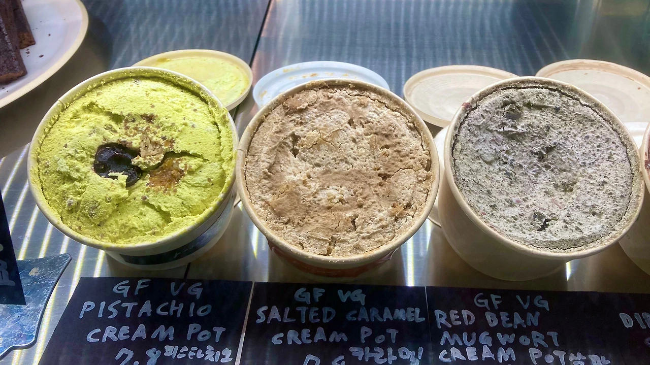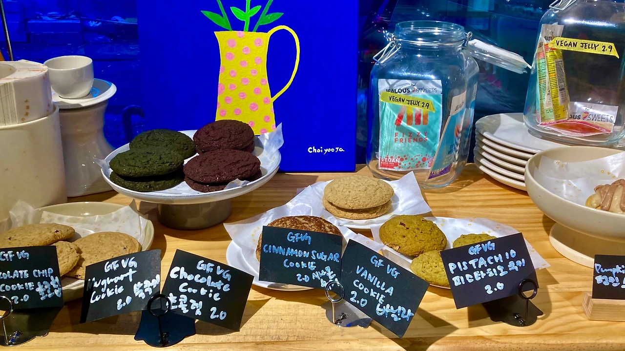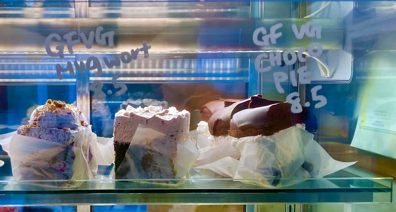 써니 브레드의 시그니처는 두유 크림을 사용한 초코파이. 두툼한 초콜릿 케이크다. ‘몽쉘통통’ 같은 초코파이. 크림과 초코 시트 간 비율이 1:1이다. 시선을 강탈하지 않을 수 없다. 초콜릿 케이크의 첫맛은 강렬하다. 꾸덕하면서도 부드럽게 카카오가 진하게 입안을 강타한다. 달콤함이 사라질 무렵, 담백한 두유 크림이 입안을 한번 더 강타한다. 크림은 보슬보슬하고 부드럽다. 달콤함의 토네이도다. 초콜릿 케이크 시트 사이에 유기농 딸기잼도 들어가 있다. 한입 먹고 돌아서면 다시 생각난다. 두툼하고 큼직한 비건 케이크. 부담 없이 먹을 수 있다. 속이 더부룩하지 않다. 포근하고 담백하다.