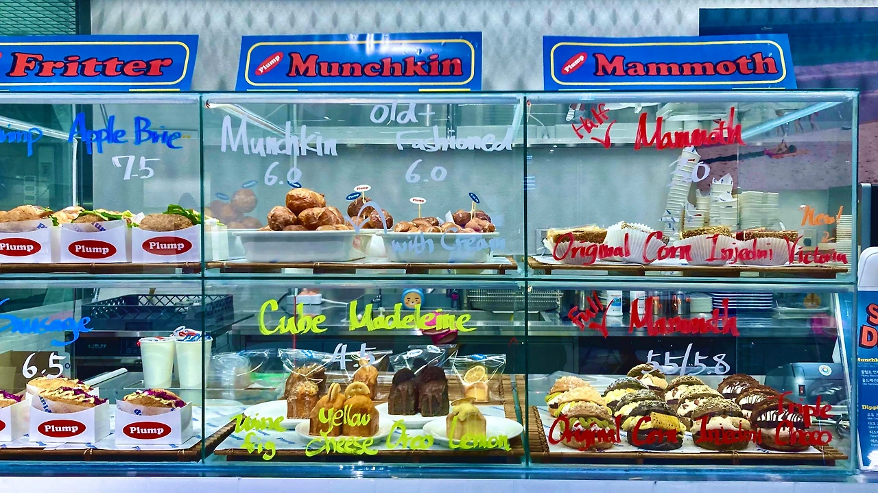 플럼프 성수는 맘모스 빵이 그동안 해보지 않았던 변화를 시도한다. 물론 플럼프 성수도 오리니절 맘모스를 만든다.동시에 플럼프만의 새로운 해석이 담긴 맘모스도 만든다.옛것과 새것이 어울리는 '성수'의 결과 맡는 베이커리카페다. 맘모스빵은 기본 소보루빵 안에 크림을 베이스로 깔지만, 원형이다. 크림 소보루빵과 맘모스 사이의 미묘한 경계에 있다. 기존 맘모스 빵은 맛을 겹겹이 쌓아간다. 하지만 플럼프는 크림과 재료들을 있는 그대로 집어넣는다. 소보루빵에 도넛에서 볼만한 조합으로 맛을 쌓아간다. 기존 맘모스가 겹겹이라면? 플럼프의 맘모스는 층층이다.