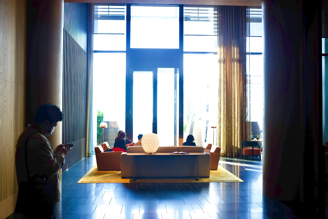 라운지 주변을 둘러보면, 불가리라는 브랜드 정체성을 표현하기 위해 공간 하나하나를 매끄러우면서도 고급스럽게 만들었다는 걸 알 수 있다. 그러나 아무리 공간디자인이 강하다고 해도 그 안에 식물이 없으면? 답답하다. 이 답답함이 공간완성도를 떨어뜨리는 것은 당연하다. 불가리가 이것을 모를 리가 없다. 불가리 호텔자체가 고층 빌딩 일부에 있기 때문이다. 지상과의 접점이 전혀 없다. 빌딩구조상 금속이 많기에, 계절감을 넣기 위해 식물을 적지적소에 배치하는 건 지극히 당연한 일이다. 동시에 창문을 통해 도쿄주변의 녹음을 가지고 와야 한다. 즉, 불가리는 야외 라운지와 유리창, 도쿄풍경을 라운지에 끌어오는 것으로 라운지 분위기의 완성도를 높였다.