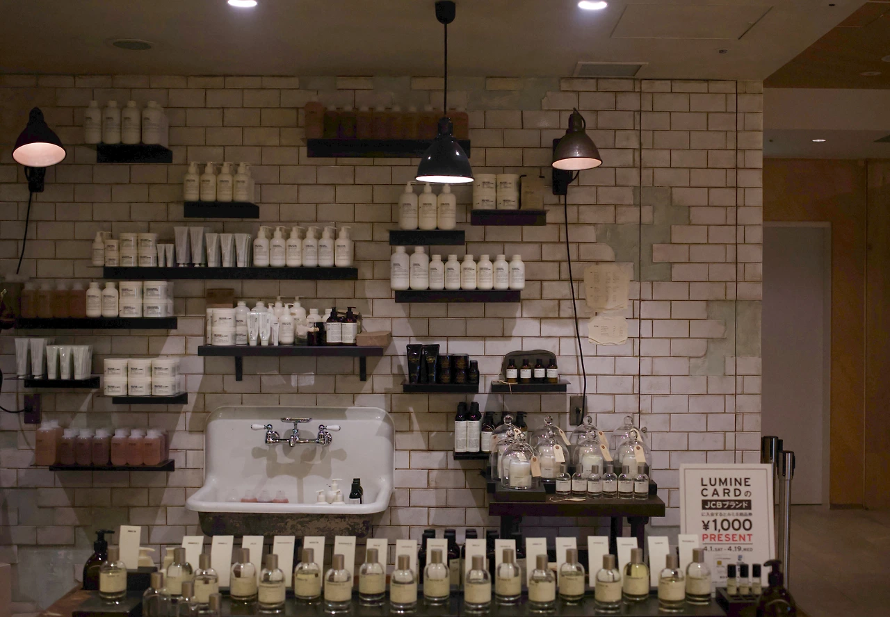 도쿄 미드타운 야에스는 히가시야 맨 마루노우치와는 다른 접근 방식을 선택했다. 히가시야 맨 마루노우치가 상품 진열대와 다양한 오브제를 통해 곡선을 도입했다면, 도쿄 미드타운 야에스는 천장에 원형 조명과 식물을 조화롭게 배치해 분위기를 환기시켰다. 사진을 보자. 높은 천장에 달린 원형 조명과 함께 식물을 배치함으로써 천장에서 곡선을 극대화시켰다. 이로 인하여, 도쿄 미드타운은 직선적인 빌딩임에도 불구하고 단조롭지 않은 부드러운 분위기를 선보인다.