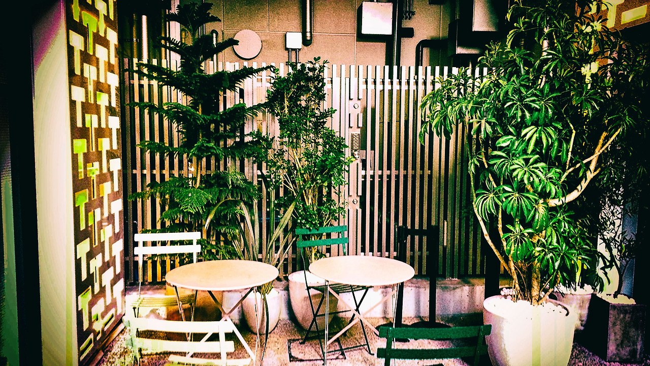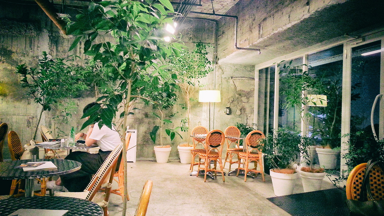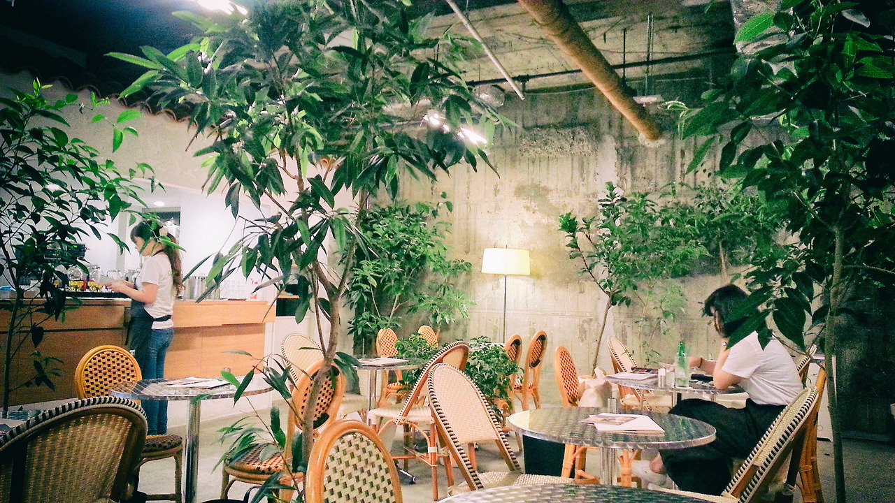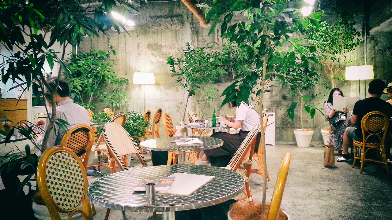 유심히 봅시다. 각 테이블과 테이블 사이에 크고 작은 화분들도 공간을 다 나누어 놓았습니다.