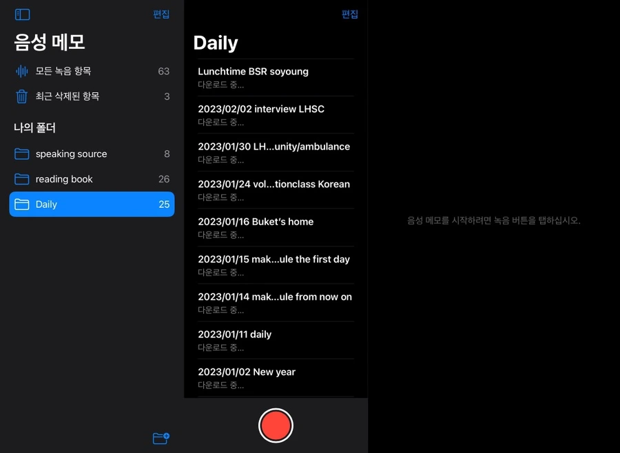 *필러 워드(umm, like 등등 의미 없는 소리)나 다음에 뭐 말할지 고민하며 공백을 길게 만들어도 되니까 일단 생각하는 과정까지 전부 녹음하는 것이 좋다. 처음에는 한두 문장 정도 계획했던 문장을 말하고 나면 그 뒤에 내용을 붙이는 것이 어렵다. 아마 영어로 말하면서 우리말로 생각하고 그걸 다시 영어로 이어서 말하려니까 과부하가 걸린 게 아닐까 생각한다. 필러 워드도 무시하고 계속 시도를 하다 보니까 말하는 도중에도 '다음엔 이런 내용을 말해야지'라는 생각을 붙일 수 있게 되는 것 같다. 지금이 4개월 차인데 1달에서 2달 사이 즈음 변화한 것 같기도 하고... 아무튼 처음보단 확실히 말을 하는 중에 다른 생각을 하는 것이 편해졌다.
