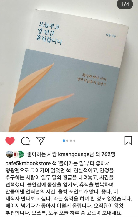아침 6시 반에 아 진짜 회사 가기 싫다,라고 생각하며 침대에 누워 있다 인스타 디엠을 받았다. 아침 출근길에 <오늘부로 일 년간 휴직합니다> 책 소개글을 읽고 눈물을 쏟았다고, 그동안 수없이 고민하며 결정을 미뤄온 나 자신에게 미안한 마음이 들었다며 메시지를 남겨 주셨다. 그 마음을 너무 잘 알 것 같아서 나까지 눈물이 나려고 했다.