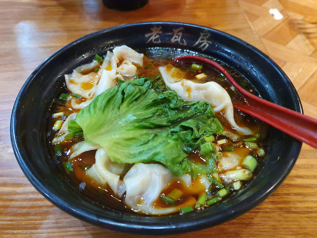 두 차례에 걸친 웨이팅 경험으로 보건대 이 식당 입장은 한시간 반은 걸릴 각이다. 우리는 어제 배운 빠른 손절력을 발휘하여 그 옆골목의 아무 식당에나 들어갔다. 곱창국수 페이창펀과 물만두를 시켜 먹었다. 두 음식 모두 뻘건 고추기름이 올라가있었다.