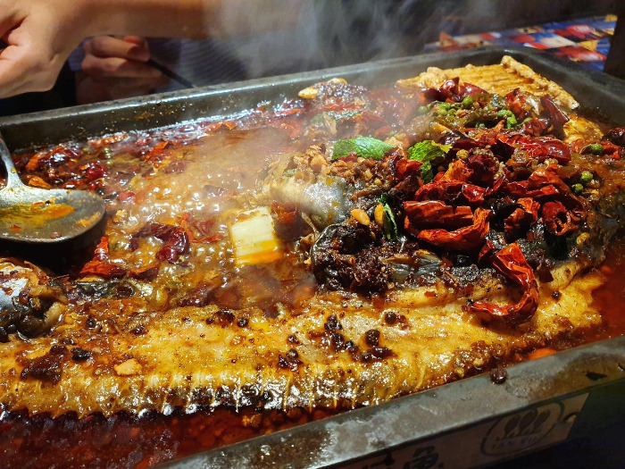 청두에서의 마지막 식사는 생선요리였다. 이 식당에서 가장 유명한 걸로 주세요, 했더니 아주 커다란 사이즈의 마라 생선요리가 나왔다. 우리는 잠시 말이 없었다. 부글부글 끓는 빨간 생선 때문인지, 식당의 붉은 조명 때문인지 몰라도 P는 조금 비장한 얼굴이 되었다.