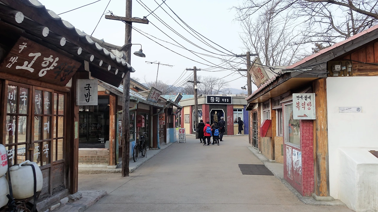 국립민속박물관 동편, 경복궁 담장 안쪽에 위치한 이 추억의 거리는 1960~70년 대 국밥집, 만화방, 레코드점, 이발소 등을 그대로 재현해놓았다. 대부분 상점은 밖에서만 볼 수 있는 반면, 다방만큼은 실제로 들어가 앉아 추위를 잠시 녹일 수도 있고, 가벼운 담소를 나눌 수 있다. 단, 전시의 공간인 만큼 실제로 음료를 판매하지 않고, 소지한 음료 역시 마실 수 없다. 하지만 그 옛날 다방의 정취를 느끼기엔 부족하지 않다.