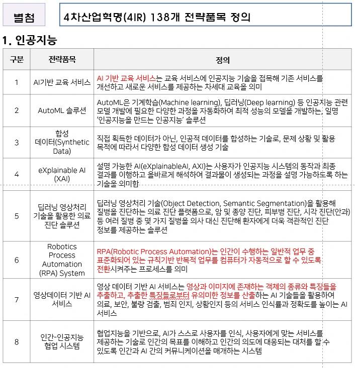 아래 그림 왼쪽을 보시면 올해 공고가 올라온 정부과제입니다. 과제로 지원 가능한 기술에 대한 품목을 알 수 있습니다. 인공지능 기술을 설명하고 있습니다. 저의 관점은 정부과제를 지원하는 게 아니고 인공 지능으로 무엇을 할 수 있는지 파악하는 겁니다. 먼저 교육 서비스가 가능합니다. 다른 내용은 뭔 소리인지 모르겠습니다. 그냥 편하게 건너뜁니다.