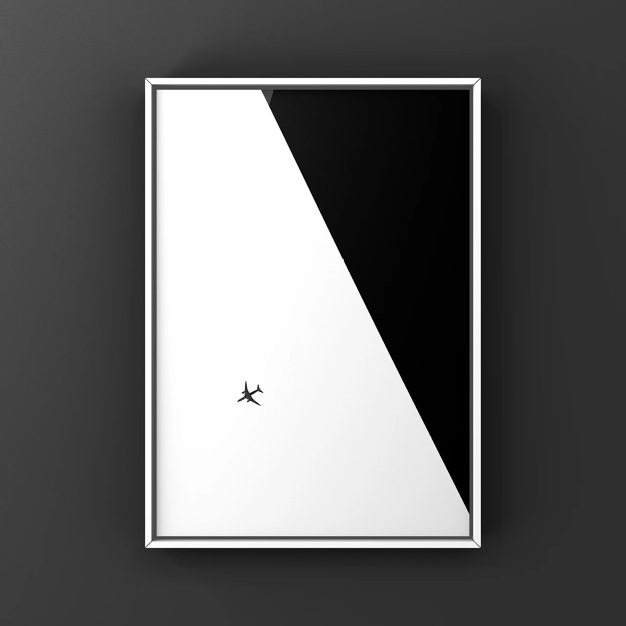 다른 요소는 제거하고 화면에서 필요한 요소는 비행기, 삼각형 2개만 남기고 다 뺐습니다. 미니멀리즘으로 완성된 사진을 차분히 오랫동안 바라봤습니다. 보이지 않던 의미를 찾았습니다. 둥지를 떠나는 새의 모습이 보였습니다. 사진의 제목을 이소라고 정했습니다. 사진에 가로등, 건물의 유리창, 구름, 도로 사인 등이 같이 있었다면 “이소”라는 제목은 찾지 못했을 겁니다.