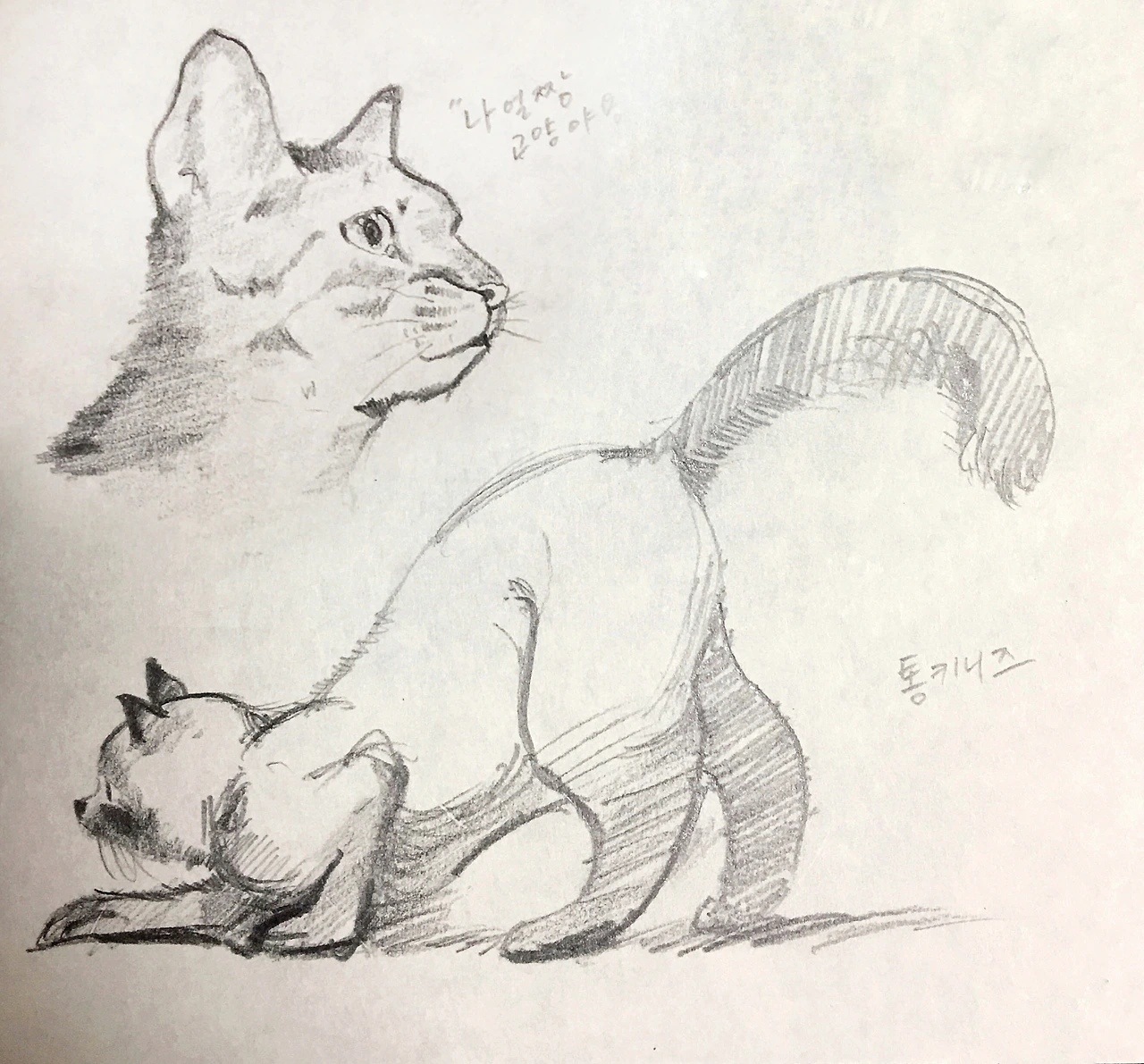 그림 그리기를 좋아합니다. 그림 강좌 책을 사서 그리는 법을 독학하기도 했고 인터넷 수업도 들었습니다. 연필에 주는 힘의 강약에 따라서 굵기와 느낌이 달라지는 선의 모습은 참 매력적입니다. 동물과 사물의 모습을 따라 그리면서 못 보고 지나쳤던 형태와 모양을 발견하고 새로운 시각을 가지게 됩니다.