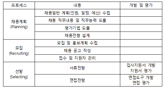 스타트업 채용 단계를 보다 세분화해보면 크게 채용계획(Planning), 모집(Recruiting), 선발(Selecting) 과정으로 이루어집니다.