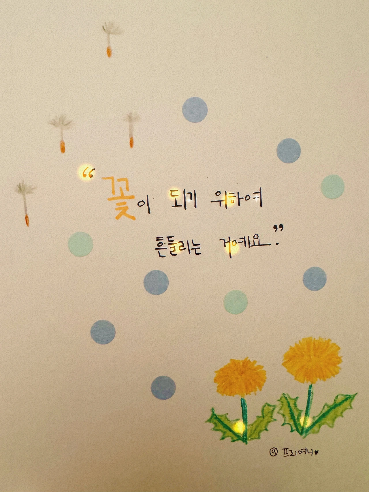 잠시간 흔들린 당신, 괜찮아요. 흔들려야 꽃이 되는 법이니까요. 꽃으로 자리 잡기 위해선 예행연습이 필요한 법이죠.