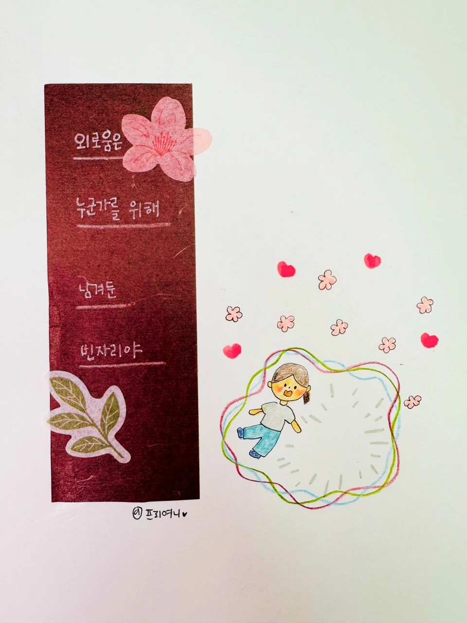 그 빈자리는 남겨 놓은 자리, 문득 외로울지도 모를 당신 ---- 오늘부터 외로움을 다시 써보는 건 어떨까요? 세상을 더 따뜻하게 볼 애정 자리로 보는 건 어떨까요?