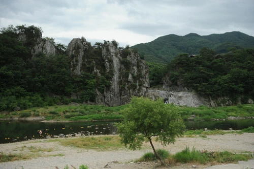 충주 수주팔봉은 물 위의 여덟 봉우리란 뜻으로 달천 건너편에 서있어 마치 병풍을 연상케 한다.