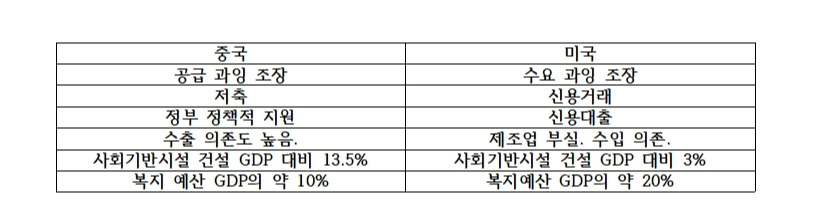 중국은 GDP의 약 10% 미국은 GDP의 약 20% 유럽은 평균 30%를 복지 예산으로 지출한다.