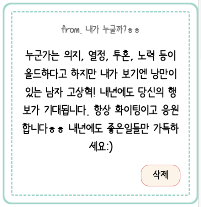 올 한 해 가장 깊이 와닿은 칭찬이다. 앞으로도 '낭만'이라는 단어를 가슴에 새기고 살아가겠다.