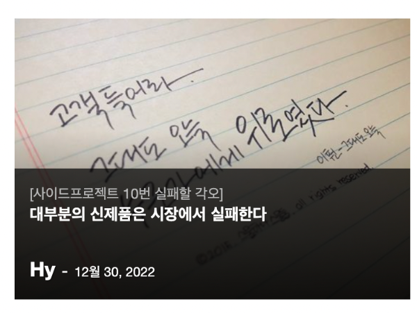 회사의 업무와 별개로, 내가 정의한 사회의 문제를 해결해보고자 한다. 이는 나의 가치실현 목적이다. 회사에서는 주어진 업무를 해야 하며, 이는 내가 꿈꿔왔던 도전을 시도하지 못함을 의미한다. 그렇기에 회사 밖에서 아무런 제약 없이 내가 생각한 문제정의에서부터 시작하였다. 정말 감사하게도 아직 제대로 시작한 건 없는데, 이 내용이 모비인사이드 매거진에 기고되었다. 큰일이다. 이제는 멈출 수 없는 열차 위에 올라탔다. 앞으로 계속 실패하는 과정을 기록에 남기겠다.