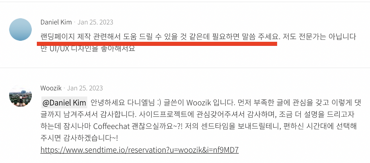 팀원에 대한 고집을 꺾게 된 가장 큰 계기는 '나의 꿈과 아이템을 보고 먼저 연락을 준 사람들'이기 때문이다. 지난 1월, 브런치에 '사칭계정 탐지 및 신고 서비스'라는 글을 기고하였다. 총조회수가 134회에 불과하지만, 소중한 2분이 이 글을 읽고 먼저 연락을 건넸다.
