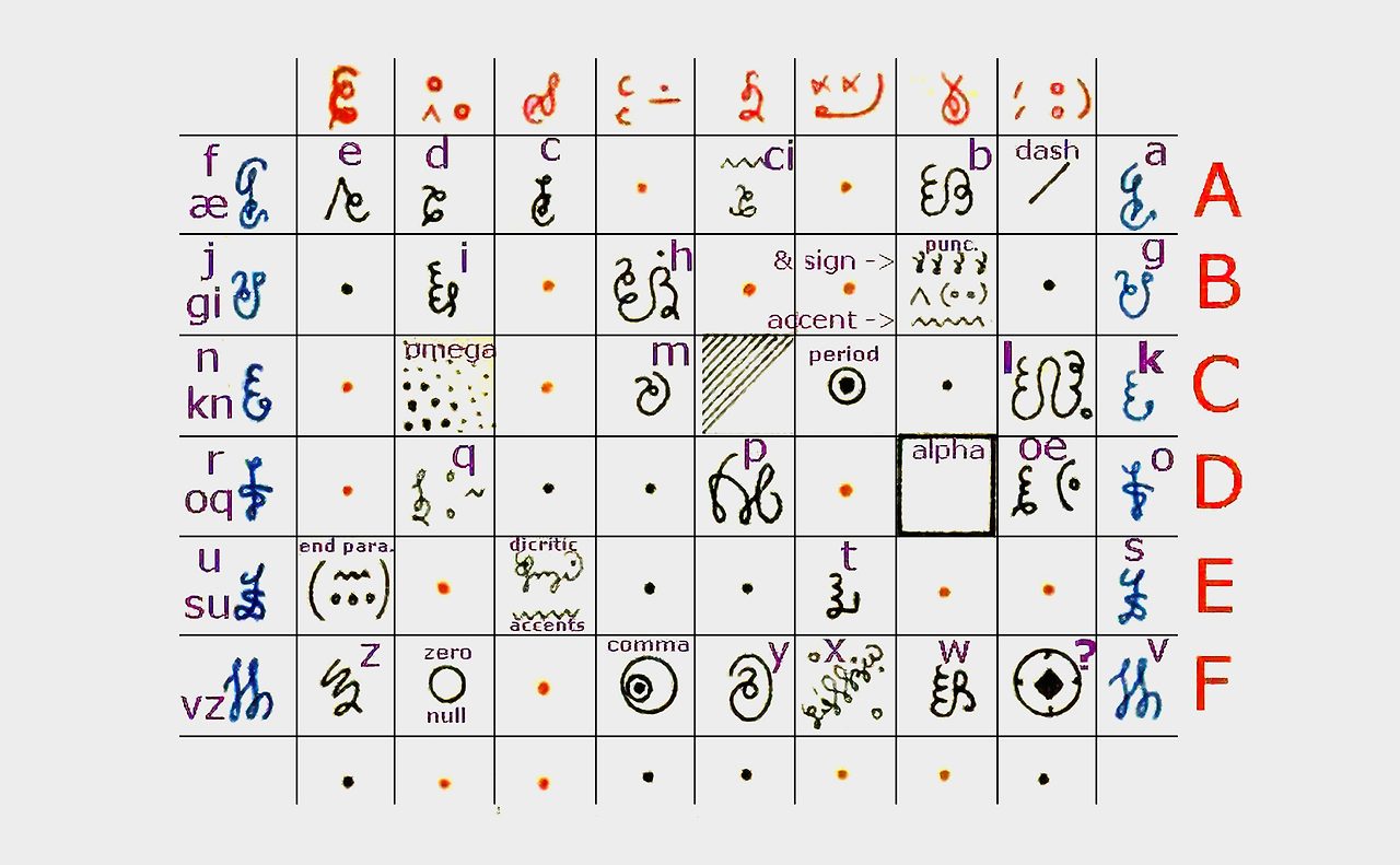 언어는 고유의 알파벳과 문법 체계를 갖춘 것으로 보이지만, 실제로 그 내용을 해독하거나 이해할 수 있는 방법은 알려져 있지 않습니다. 이 문자들은 때로는 유려하게 흐르는 필체로, 때로는 기하학적인 형태로 페이지를 채우며, 읽는 이로 하여금 무한한 해석이 가능하도록 만들기도 합니다.