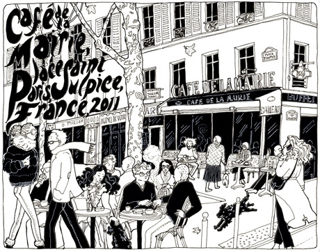 광장은 주변에는 자동차이 비교적 적고, 중심에는 벤치와 나무가 배치되어 있어 현지 주민과 방문객 모두에게 휴식 공간으로 활용되는 장소이기도 하다. 카페 드 라 매리(Café de la Mairie)와 같은 소규모 카페와 서점이 자리하고 있다.