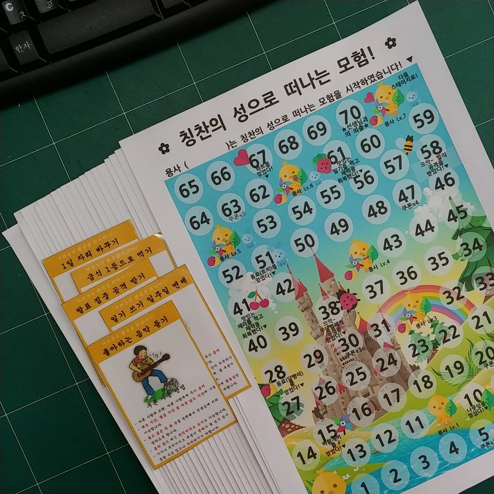 학생들은 이 스티커를 칭찬판에 붙이게 했으며, 일정한 칭찬 스티커를 모은 학생에게는 재미있는 보상을 주기로 했다.