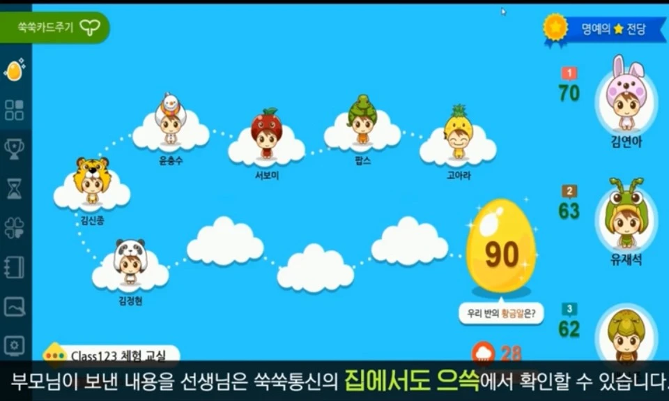 '클래스 123'이라는 프로그램이었다. 이 프로그램에는 학생 개개인한테 칭찬할 수 있는 기능이 있었고, 반 전체에도 적절한 보상을 할 수 있었다.
