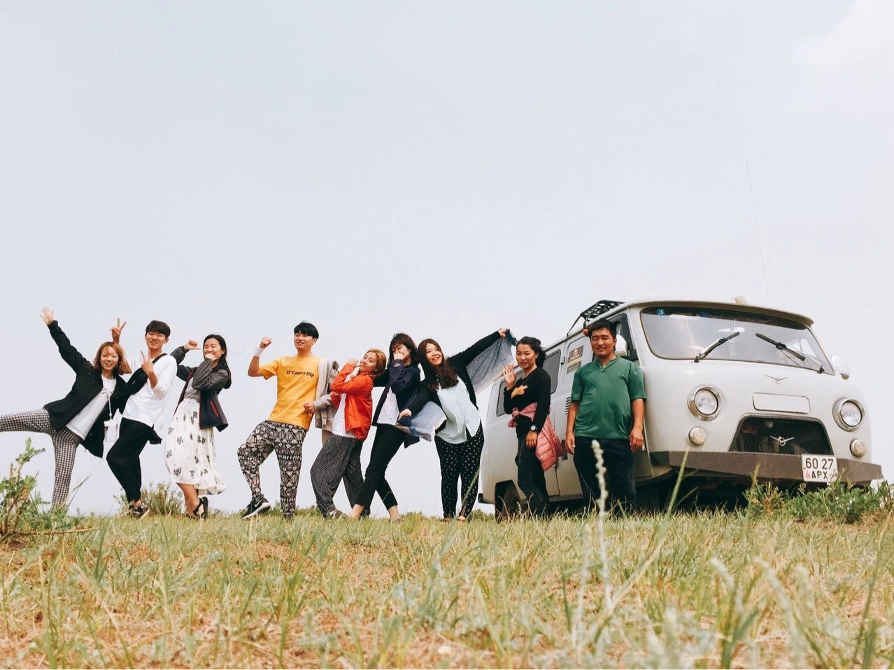 고비 사막 투어 중 가이드 분들과 한 컷. 푸르공이란 차를 타고 몇일 간 우리는 함께 했다.