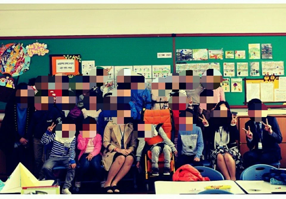 첫 교생실습 반 친구들과 찍은 사진.