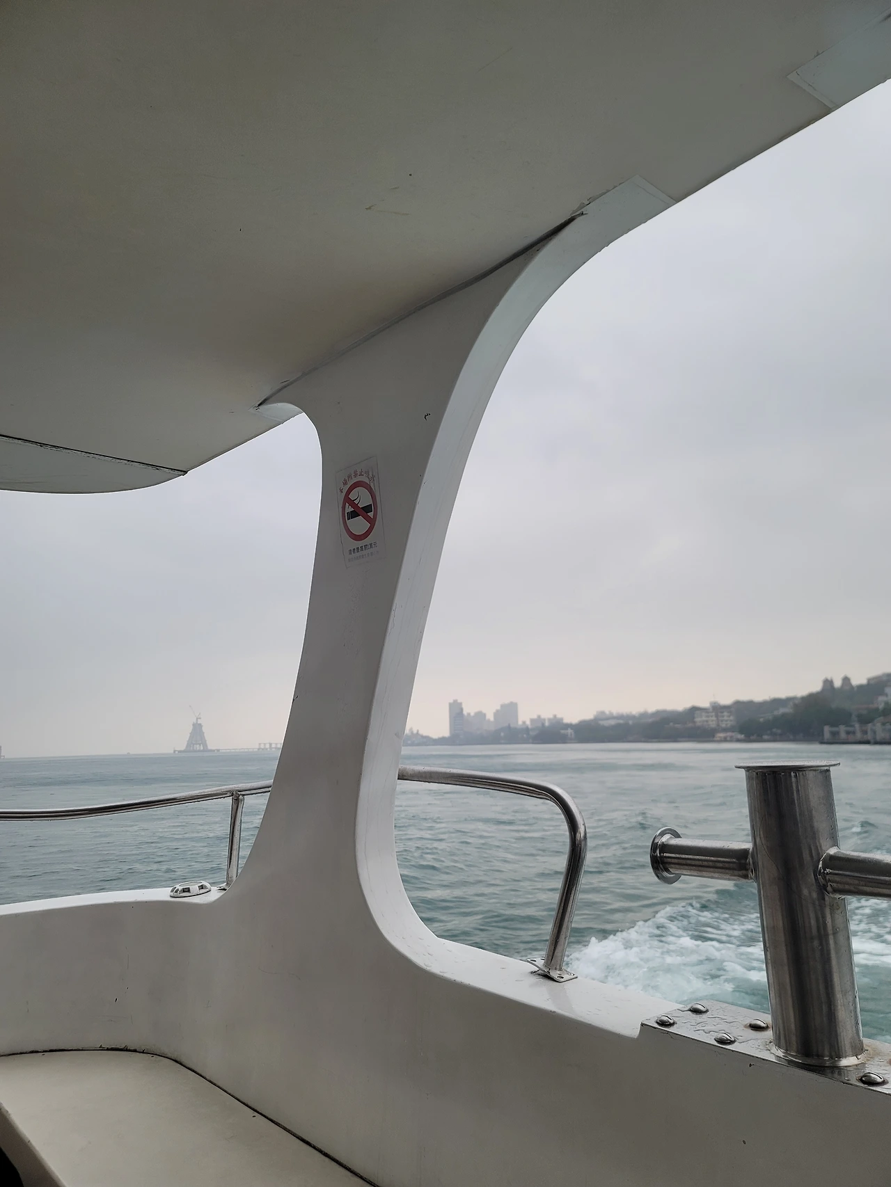 그렇게 탑승한 배 안은 어딘지 모르게 서늘했다. 배는 커서 족히 30명은 탈 수 있을 듯했으나, 승객이라곤 우리를 포함해 8명도 채 되지 않았다. 비가 온 탓이려나. 그렇게 치부하고 넘어가려 했으나 좌석을 보노라니 기가 막힌 걸 감출 길이 없었다. 좌석들은 비를 맞은 듯 물기가 아주 흥건해서 전혀 앉을 수 없었다. 심지어 창문도 없었다. 다만 바다 밖으로 벽이 뻥 뚫려있을 뿐이었다. 난처한 상황을 어떻게 받아들여야 할까. 그래도 별수 없으니 자리에 앉았다.