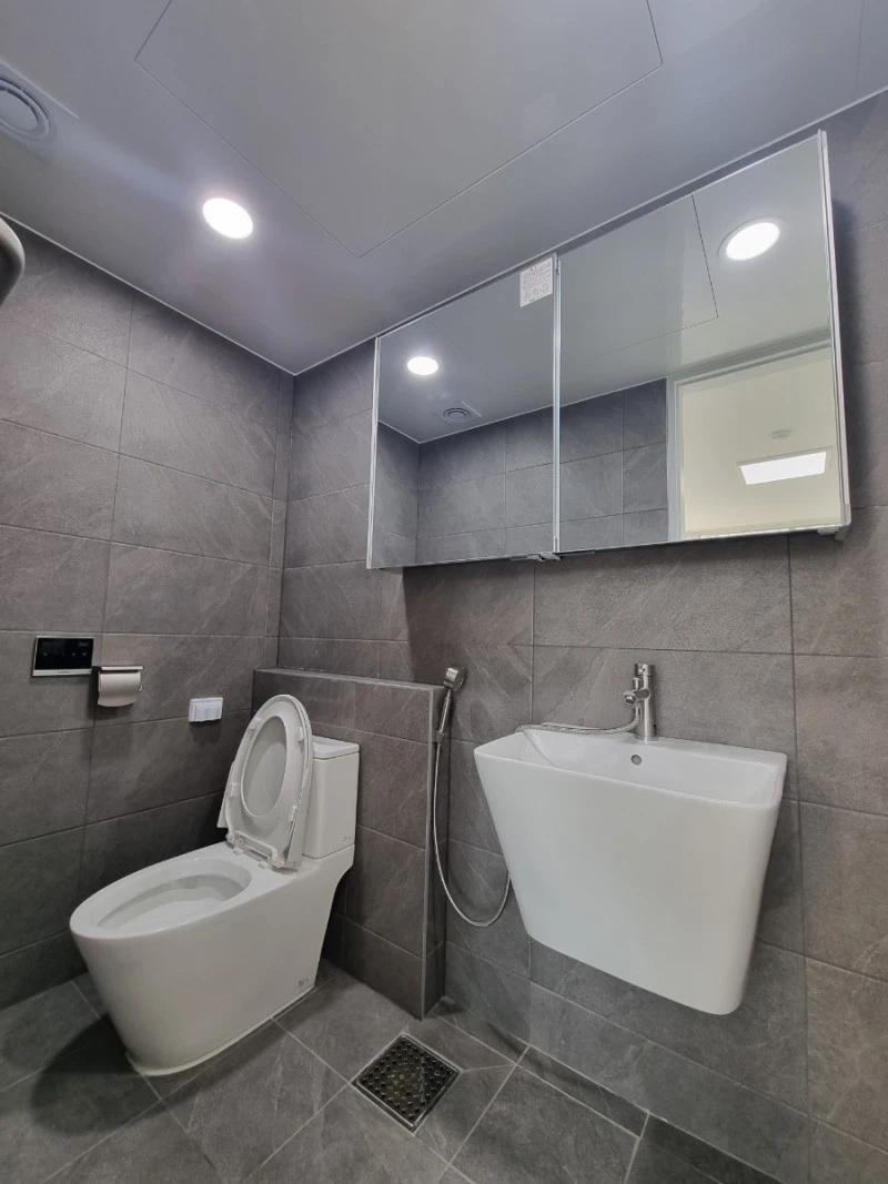 3. 욕실 타일은 아주 짙지 않은 다크 그레이가 물 때 감추기에 정말 효과적이다. (화장실 청소 횟수가 줄어도 괜찮다, 줄눈은 다크 그레이 무광이면 금상첨화)