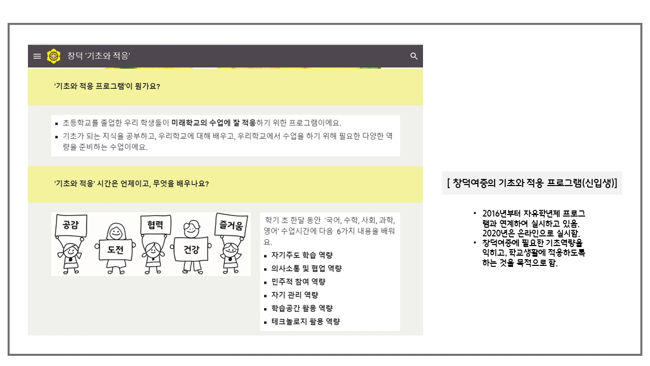 특히, 1학년 신입생들은 정보담당부서교사와 담임교사가 제작한 플랫폼 활용&정보윤리 관련 영상과 2016년부터 해온 ‘기초와 적응 프로그램’을 통해 보다 빠르게 새로운 플랫폼과 학교 분위기에 적응한 듯합니다.