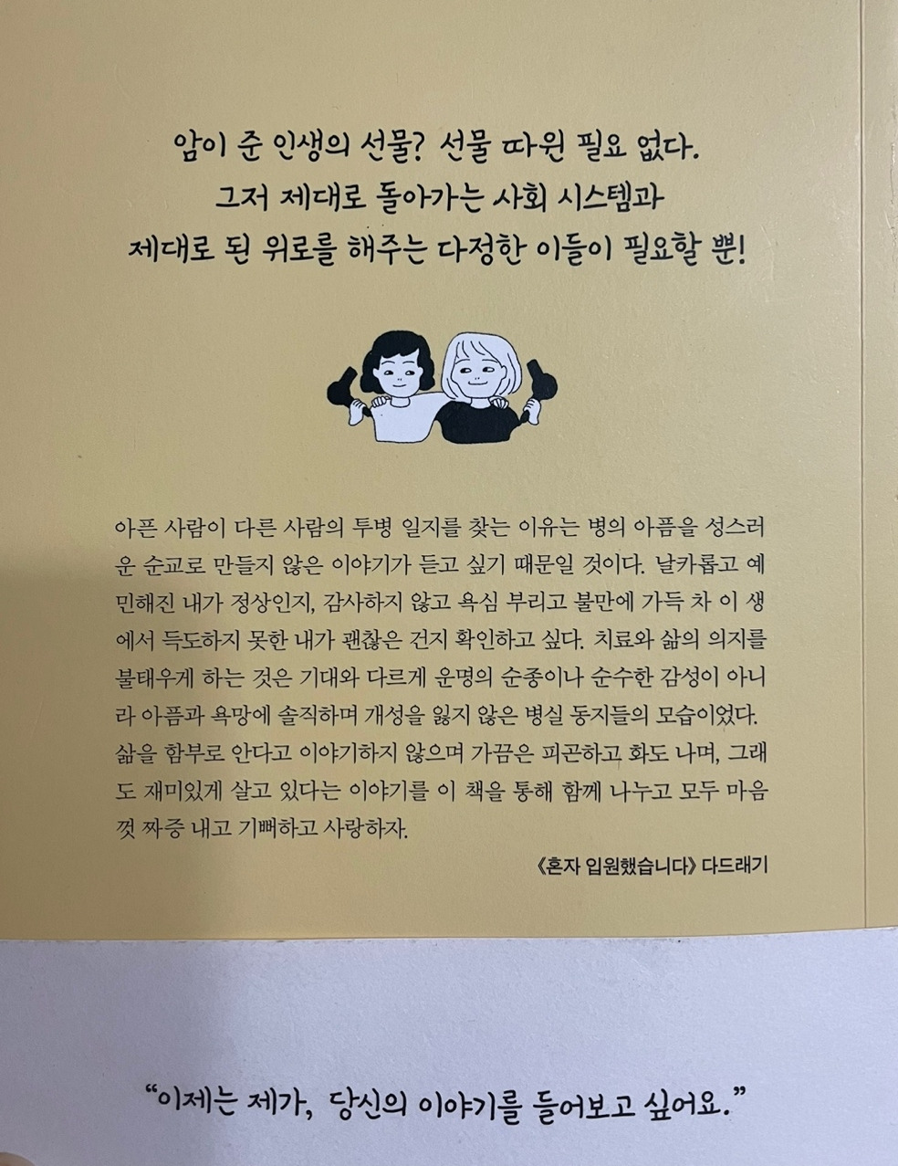 책을 쓰면서 그동안 제가 '암'이라는 질병 안에 웅크려 지내던 모습이 보였어요. 세상과 나 사이에 교묘하게 나뉜 선도 보였고요. 보이지 않지만 박음질처럼 공고하고, 단단한 선이었어요. 아슬러는 그 박음질을 후드득 뜯어내는 이야기들을 담았습니다.